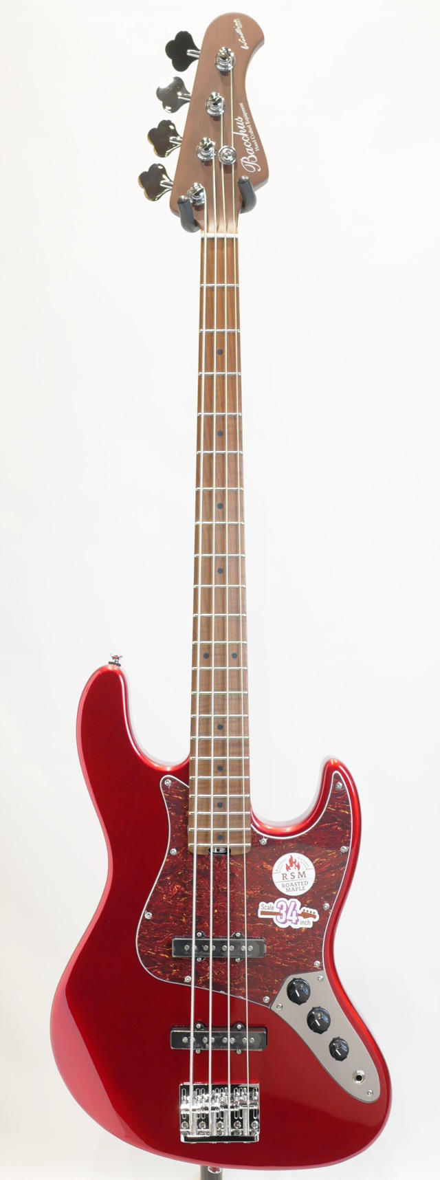 当機最大の特徴は一目見て分かる色濃いネック材。そのネック&指板には、高温で加熱処理して材の中の水分や油分を一定数量に揮発させることにより剛性を高め、豊かな生鳴りと経年変化したビンテージのような小慣れたトーンを生み出す、高級機種で採用される事の多いローステッドメイプル材が使用されております。ボディは一般的なJBモデルよりも少しスマートなサイズとなるディンキーシェイプが採用されており取り回しの良いサイズが実現しております。