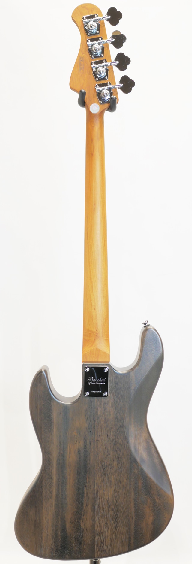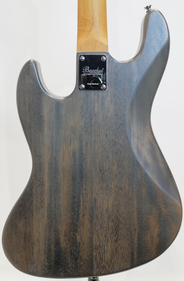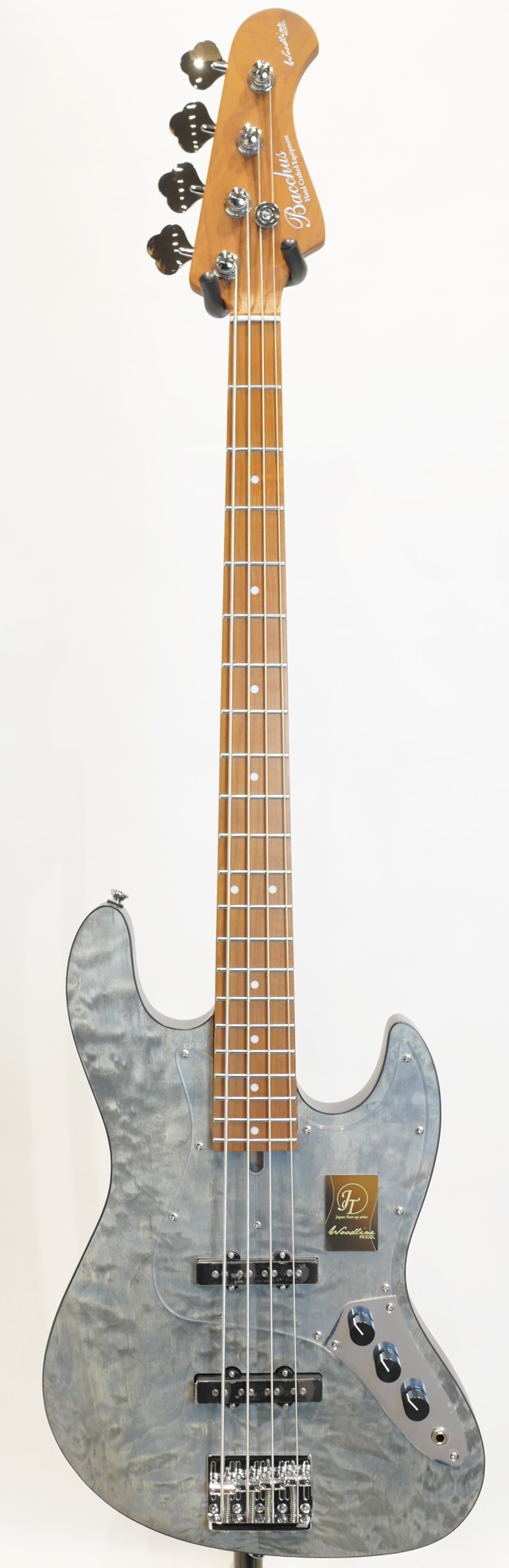 “Japan Tune-up series” ”JTシリーズ”の製品では全てプレイヤーがすぐに実践使用を開始できることをイメージし、長野県松本市にあるディバイザー専門部署「WDG(Workshop Deviser Guitars)」にてプレイアビリティに直結する部分を経験豊富な日本の職人の手によって弾きやすさに直結する弦高調整や指板の最終仕上げなどもチューンナップの項目として、フレットすり合わせ、ナット加工&サドル調整、フレットエッジ加工に至るまで1台1台手間暇を惜しまず調整とセットアップを行っています。 2001年から始まったBacchus最高級ラインの”Handmade Series”のスピリットを受けつぎ、「プレイヤーの皆様が安心してその身を預け、最高のパフォーマンスを生み出す楽器」を送り出すシリーズです。 “WL”モデルは、”Handmade Series”で培った“WOODLINE”の持つディンキーシェイプのボディを継承し、一般的なJBタイプのエレキベースよりややスリムに設計されプレイアビリティに優れます。ボディトップには美しい杢目が目を引くキルトメイプル材を採用、ボディバックにはマホガニー材と似た特徴を持つ中低域が豊かなナトー材、ボディ外周にはブラックのバインディングが施され引き締まったルックスと、つや消しタイプのマットな仕上げにより上品で落ち着いた印象を持った高級感のある仕上がりです。ネック&指板には、高温で加熱処理して材の中の水分や油分を一定数量に揮発させることにより剛性を高め、豊かな生鳴りと経年変化したビンテージのような小慣れたトーンを生み出す、高級機種で採用される事の多いローステッドメイプル材が使用されております。 また、各部の上質な仕上げに加えパーツや機能にも拘りは受け継がれており、従来品よりも比重が高く密度の詰まった中低音域にかけて広がるベース・トーンが特徴の真鍮(ブラス)製のオリジナルネックプレートを採用し、”WOODLINE”モデルではおなじみの「ターボスイッチ」を本機でも搭載しております。トーンノブをプルアップすることで2つのシングルピックアップをシリーズ(直列)接続し、太くハムバッキング・ピックアップのようなサウンドを作り出します。(※ターボスイッチがオンの時音量はフロントVolノブで調整します。この時リアVolノブはバイパスされます) 実際に手に取ってみてその丁寧な仕上げには息を呑みます。高い演奏性能に劣らないバランス良くアウトプットされるサウンドにも驚きです。中低域の力強さにクリアなトーンキャラクターを持ち、純国産モデルと言っても差し支えない程のポテンシャルを持った仕上がりとなっております。 Body : Nyatoh Neck : Roasted Maple Fingerboard : Roasted Maple Nut : PPS Bridge : JB bridge w/ brass saddle Machineheads : Opengear Type Pickup : Original JB set Control : 2Vol,1Tone(Pull up=Turbo SW) Scale : 864mm(34inch) Fingerboard Radius : 305R Width at Nut : 38.0mm Case:オリジナルソフトケース