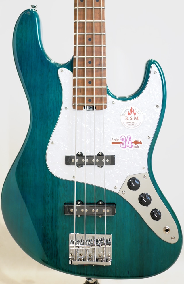 当機最大の特徴は一目見て分かる色濃いネック材。そのネック&指板には、高温で加熱処理して材の中の水分や油分を一定数量に揮発させることにより剛性を高め、豊かな生鳴りと経年変化したビンテージのような小慣れたトーンを生み出す、高級機種で採用される事の多いローステッドメイプル材が使用されております。ボディは一般的なJBモデルよりも少しスマートなサイズとなるディンキーシェイプが採用されており取り回しの良いサイズが実現しております。