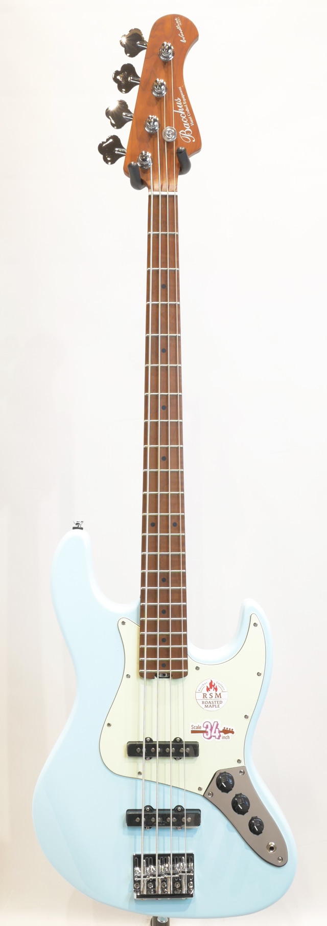 Bacchus Global Series Handmadeシリーズの仕様を海外工場にて生産する事でハイコストパフォーマンスを実現しているBacchusの定番ライン。そのお求めやすい価格帯と確かなクオリティで人気の高いシリーズです。 本国、飛鳥ファクトリーにて製作される最上位機種”WOODLINE”を基に海外生産されている”WL4-STD”モデル。 当機最大の特徴は一目見て分かる色濃いネック材。そのネック&指板には、高温で加熱処理して材の中の水分や油分を一定数量に揮発させることにより剛性を高め、豊かな生鳴りと経年変化したビンテージのような小慣れたトーンを生み出す、高級機種で採用される事の多いローステッドメイプル材が使用されております。ボディは一般的なJBモデルよりも少しスマートなサイズとなるディンキーシェイプが採用されており取り回しの良いサイズが実現しております。 また、上位機種”WOODLINE”シリーズ定番”ターボスイッチ”も搭載され、トーンノブをプルアップすると2つのシングルピックアップをシリーズ(直列)接続し、従来とは一味違う太く力強いハムバッキング・ピックアップのようなサウンドを作り出します。 小振りなベースながらもネック材の特徴もあり力強い低音を持ち幅広いシチュエーションに対応可能なポテンシャルを持っておりますので、これからベースを始めようと思っていた方や、取り回しが良くて使いやすい2本目をお探しだった方におススメのベースです。 Body : Nyatoh Neck : Roasted Maple Fingerboard : Roasted Maple Nut : Graphtech TUSQ XL Bridge : JB bridge w/ brass saddle Machineheads : Open Gear Type Pickup : Original JB set Control : 2Vol,1Tone(Pull up=Turbo SW) Scale : 864mm(34inch) Fingerboard Radius : 310R Width at Nut : 38.0mm Case:オリジナルソフトケース