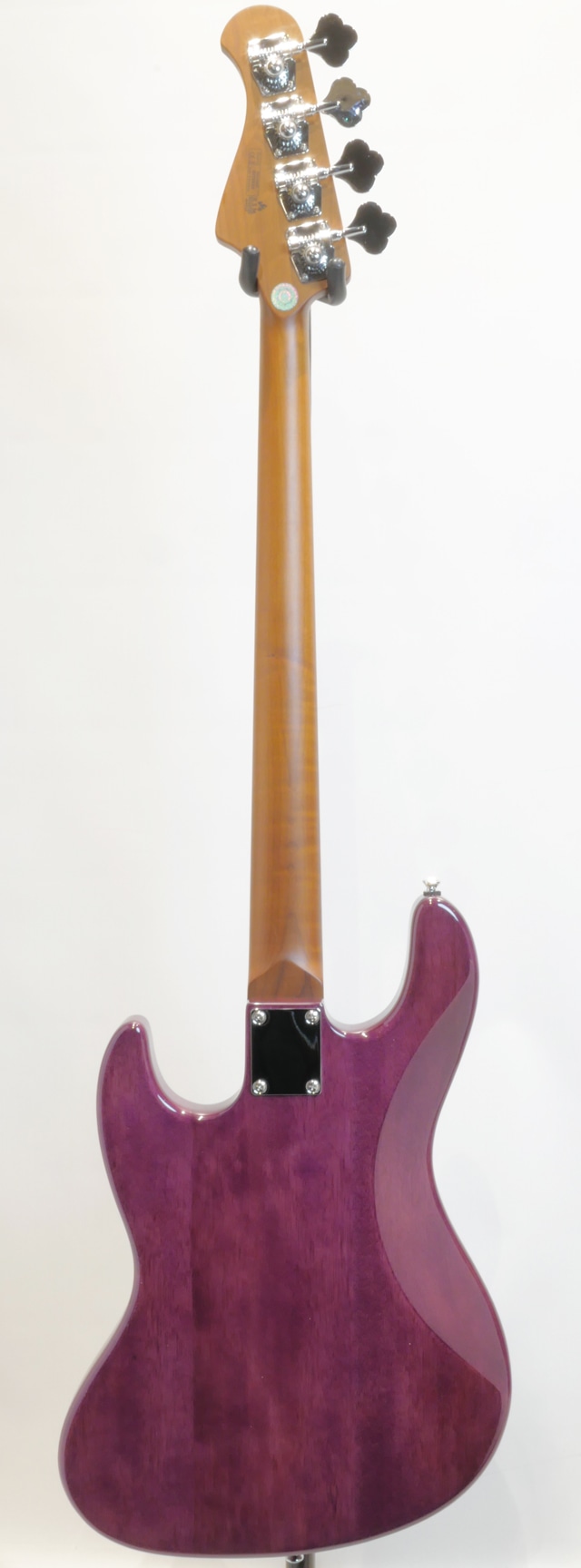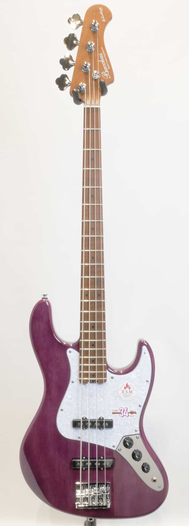 Bacchus Global Series Handmadeシリーズの仕様を海外工場にて生産する事でハイコストパフォーマンスを実現しているBacchusの定番ライン。そのお求めやすい価格帯と確かなクオリティで人気の高いシリーズです。 本国、飛鳥ファクトリーにて製作される最上位機種”WOODLINE”を基に海外生産されている”WL4-STD”モデル。 当機最大の特徴は一目見て分かる色濃いネック材。そのネック&指板には、高温で加熱処理して材の中の水分や油分を一定数量に揮発させることにより剛性を高め、豊かな生鳴りと経年変化したビンテージのような小慣れたトーンを生み出す、高級機種で採用される事の多いローステッドメイプル材が使用されております。ボディは一般的なJBモデルよりも少しスマートなサイズとなるディンキーシェイプが採用されており取り回しの良いサイズが実現しております。 また、上位機種”WOODLINE”シリーズ定番”ターボスイッチ”も搭載され、トーンノブをプルアップすると2つのシングルピックアップをシリーズ(直列)接続し、従来とは一味違う太く力強いハムバッキング・ピックアップのようなサウンドを作り出します。 小振りなベースながらもネック材の特徴もあり力強い低音を持ち幅広いシチュエーションに対応可能なポテンシャルを持っておりますので、これからベースを始めようと思っていた方や、取り回しが良くて使いやすい2本目をお探しだった方におススメのベースです。 ※掲載画像はサンプルです。商品の特性上、個体毎に木目や色合いが異なります。 ※外観部の仕上げ不良、金属パーツの傷やくすみは保証対象外になります。 Body : Nyatoh Neck : Roasted Maple Fingerboard : Roasted Maple Nut : Graphtech TUSQ XL Bridge : JB bridge w/ brass saddle Machineheads : Open Gear Type Pickup : Original JB set Control : 2Vol,1Tone(Pull up=Turbo SW) Scale : 864mm(34inch) Fingerboard Radius : 310R Width at Nut : 38.0mm Case:オリジナルソフトケース