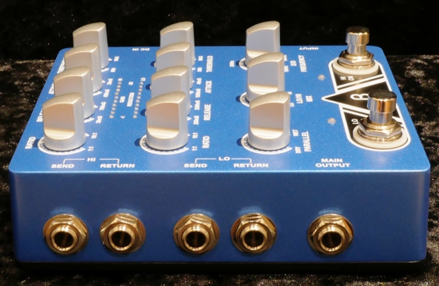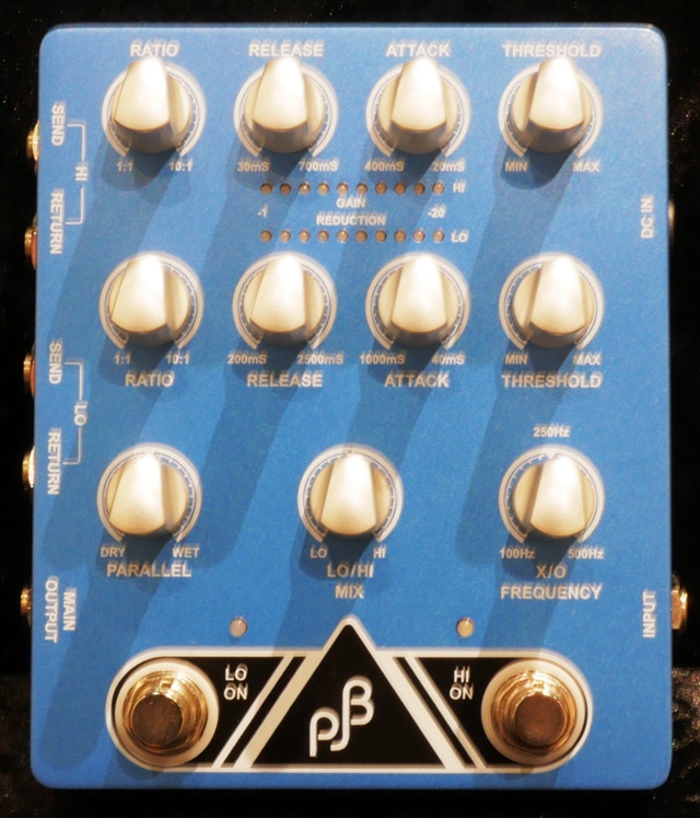 シグナルをハイとローに分け、それぞれにコンプレッサーを掛けられるペダル。コンプレッサーはスタジオ機材に匹敵する音質とコントロール性能を備えたプロ仕様。 また各帯域ごとにループを備えており、ペダルで失われがちな低音のパワーはそのままに、ハイだけにドライブやフィルターを掛けたり、過度な低音の膨らみを抑えて音程と音質を明瞭にするなど、アイデア次第で様々な使い方ができます。 ドライ音とウェット音のミックスや各帯域のバランスも自由自在です。