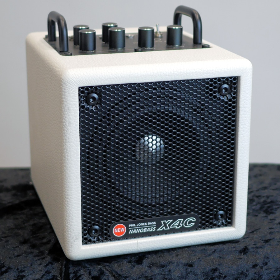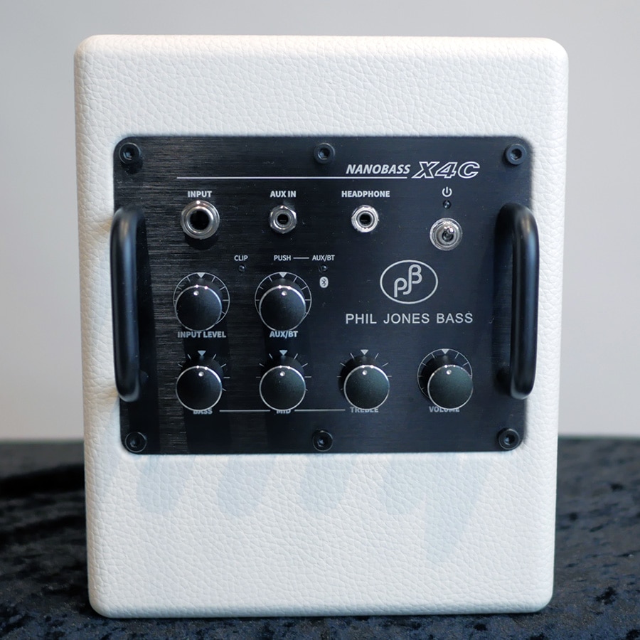 大ヒットベース・アンプX4が、モバイルバッテリー対応のX4Cに進化!AC電源だけでなく、USB-PD規格のモバイルバッテリーでも駆動できるため、機動性も加わり更に色々な場所で活躍できるアンプとなりました。 X4Cは、PJBならではのサイズを遥かに超える低音再生能力と、プロ仕様の名に恥じない表現力を持っています。また、Bluetoothを搭載し、オーディオスピーカーとしても楽器の表情を生々しく再現。 フラットでワイドレンジな周波数特性を持ち、ベースアンプとしてはもちろん、ギター、キーボードなどマルチに使える画期的な超小型ハイグレードアンプです。 注1)製品にバッテリーは含まれません。 ■出力: 35W (モバイルバッテリー使用時17W?40W、使用バッテリーにより変動) ■スピーカー: 1x PJB ネオパワー 4インチ+RALFRパッシブラジエター ■周波数特性: 68Hz ? 15kHz ■入力:3系統(Input、Aux、Bluetooth) ■Bluetooth規格:5.0、(sbc, aac, aptX, aptX HD対応) ■コントロール: Input Level、Bass、 Mid、Treble、 AUX/BT Volume、 Master Volume ■入出力端子: インプット、AUXインプット、ヘッドホン アウト ■サイズ: 160(W) x 200(H) x 197(D)mm ■重量: 2.6Kg