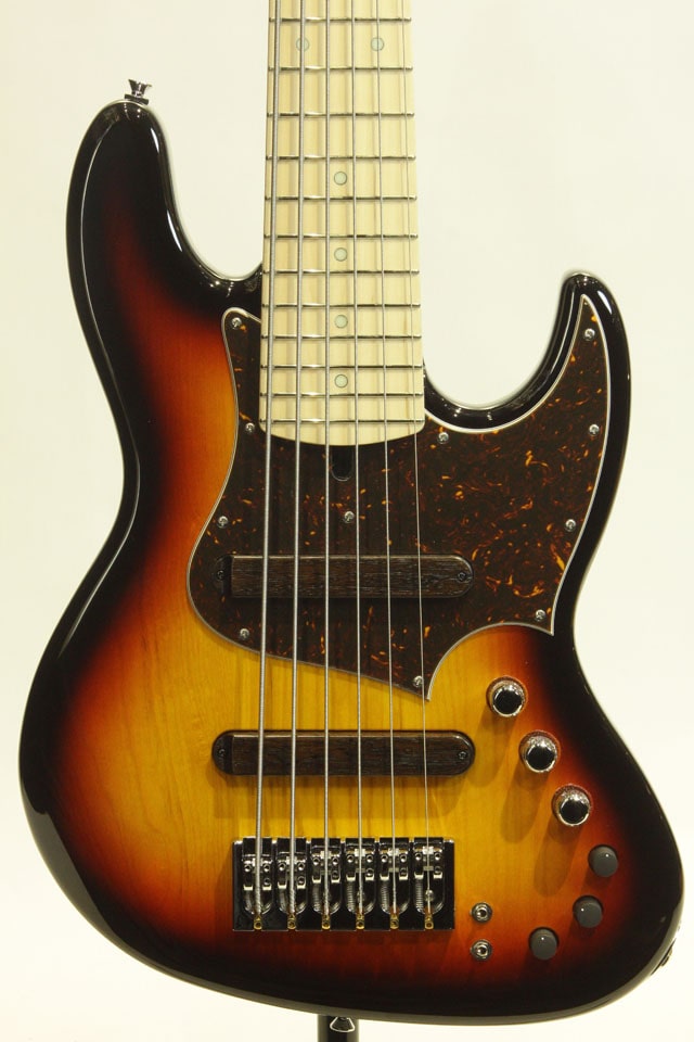 アッシュボディ、メイプルネック/メイプル指板。オリジナルピックアップ&プリアンプを搭載。弦間ピッチは調整可能ですが、19mmピッチにてセッティング致しております。ジャンルを問わず多種多様なサウンドをアウトプットするXJ-1T、手元のコントロールも一見複雑にも見えますが、慣れるまでに時間は要しません。寧ろ直観的なサウンドメイクが可能ですので、感覚派のベーシストにもおススメなブランドです。大きく設計されたボディシェイプが目を惹く6弦モデル。ボルトオン構造ですが倍音感も適度にあり、素早い立ち上がりに太く芯の通ったサウンドを響かせてくれます。再生音域の幅広い6弦モデルの帯域を再生するべく、レンジの広いアッシュをボディにセレクト致しました。メイプル指板とのコンビネーションによりLow-Bの発音もハッキリと再生致します。ポテンシャルの高い6弦ベースをご検討の方には是非お試し頂きたいモデルです。