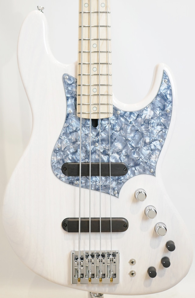 アッシュボディ、メイプルネック/メイプル指板。RAW VINTAGEピックアップとXOTIC PREAMPを搭載。標準仕様の個体になります。総重量約3.9kgとアッシュを使用した個体である事を考慮すれば、軽量な個体かと思います。アッシュとナチュラルの組み合わせからイメージされる通りタイト且つ明瞭感の良いサウンドをアウトプット致します。比較的軽量なアッシュを使用している為中音域も適度に出ており、各帯域イコライザーもスムーズに効いてくれます。手元のコントロールをフラットにセッティングしても不足に感じる事は無く、高いポテンシャルを持ち合わせておりますので、サーキットを補正程度にご使用頂いても十分に効果を発揮致します。