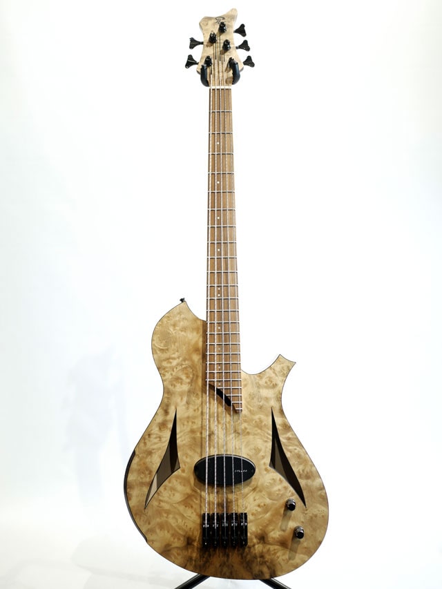 また、ネックの剛性は高めで、ピッキングに対して反応も良い印象ですが、指先で音の厚みや粘り具合を自在にコントロールできるダイナミクスレンジが広く、GraftechのPiezoシステムがエンハンス効果的にエッジを押し上げるようにコントロールできる為、音の表現幅が非常に広く感じられるベースです。オプションでDelano Magnet Pickupが搭載されておりますので、ボトムをマグネットで足しながら、Piezoでエッジのバランスを調整するような感じで、状況に応じたコントロール可能となっております。完全に個人で必要最低限の機械を使うのみの、ハンドクラフトで仕上げられている為、生産数が非常に少なく稀少な入荷となります。是非この機会に手にしてみて下さい。