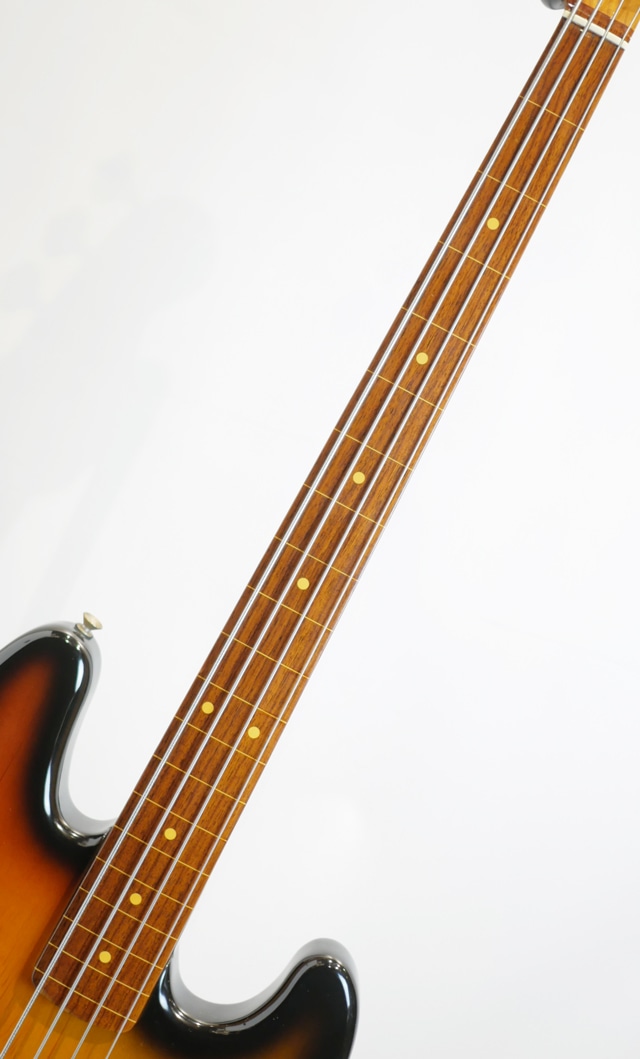 60's仕様のJBらしい重心が低く厚みのあるローミッドが特徴で、Fenderらしさを十二分に感じる1本。リアピックアップとフロントピックアップ、それぞれの個性がしっかりと立っており、ボリュームの可変によるトーンコントロールの幅も広く感じます。指板面のコーティングによる恩恵により、フレットレスではありますが程よくアタックの乗ったジャコライクな質感もございますので、フレットレスをお探しの方はもちろんジャコフリークの方にもお試し頂きたい1本です。