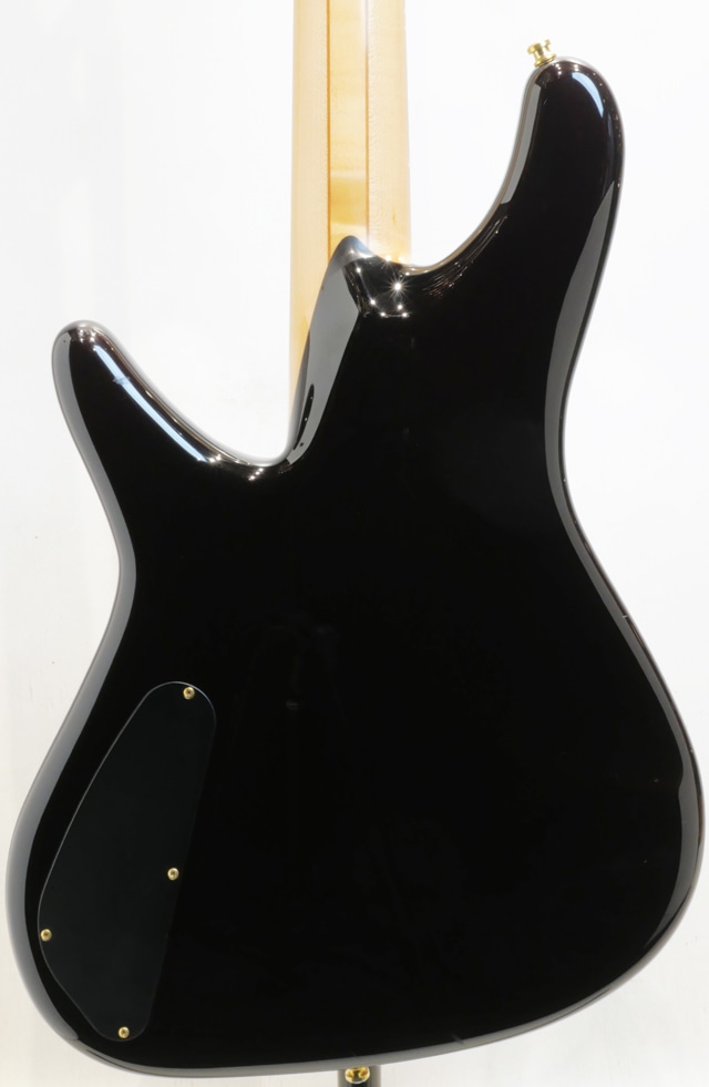 ポプラバールトップ、マホガニーバックのラミネイトボディ、Sugiとしては珍しいセットネック構造の個体です。アクアティンバーとメイプルを組み合わせたラミネイトネック/インディアンローズ指板。Sugiオリジナルのパワードピックアップを搭載したパッシブモデル。
