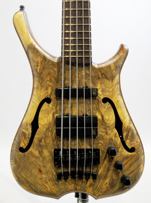 セミホロウ構造を持つInfinity。バックアイバールトップ&オバンコールバックのラミネイトウィングボディ。ネックは標準仕様にメイプルが使用されますが、こちらのモデルはウェンジ4pcネックをセレクト。指板の標準仕様はローズウッドですが、ウェンジをセレクトしております。ピックアップはMEC TJ/Jピックアップ&プリアンプを搭載。