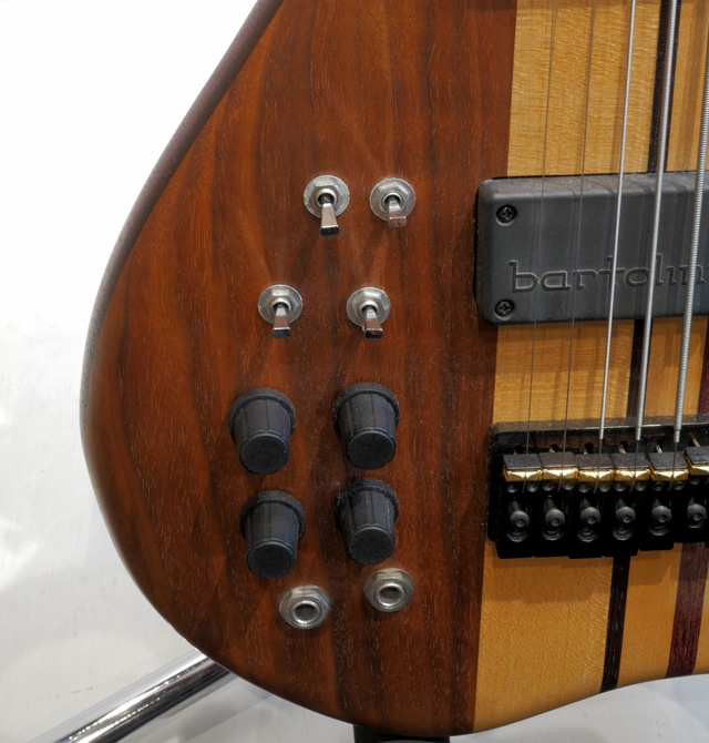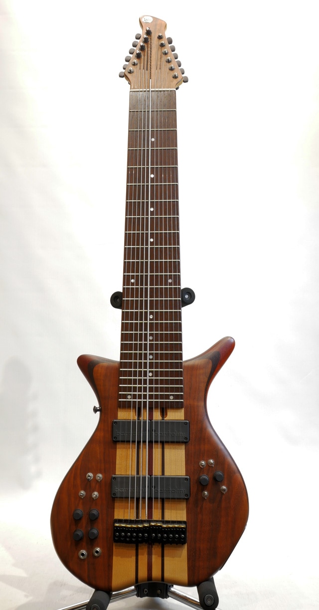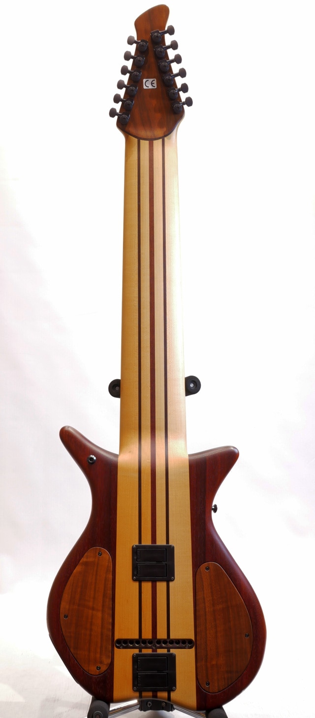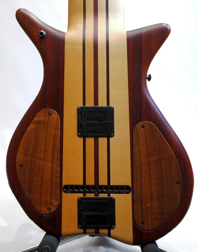 ウォルナット、ウェンジ、パドゥークから構成されたウィングボディ。メイプル、パープルハート、ウェンジから構成された7pc構造のスルーネック/ウェンジ指板。バルトリーニピックアップ&オリジナルプリンアンプを搭載。細かなキズや打痕等は見受けられますが、全体的に外傷も少なく綺麗なコンディションをキープした個体。ネックコンディションも良好で、フレットの減りも殆どありません。トラスロッド残量もありプレイコンディションも良好です。ピックアップはマグネティックピックアップの他、ピエゾピックアップを搭載。MIDアウトプットも装備されております。