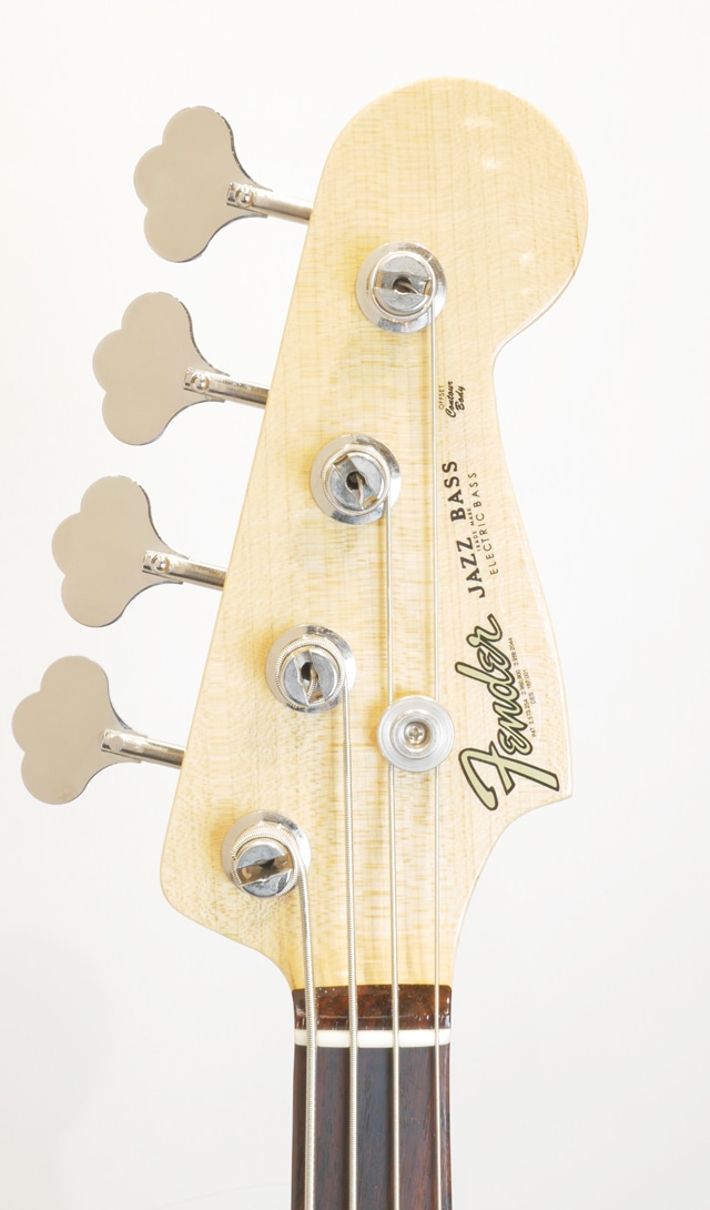 国内ショップオーダーによるカスタムビルトジャズベースになります。モデルベースを1964年としつつも、ネックシェイプにUシェイプを採用し、スラブ貼りローズウッド指板(AAAグレード)、ビンテージアップグレードフレット、ピックアップには名手JACO PASTORIUSシグネイチャーモデルに搭載されているJACOピックアップ、そして超極薄仕上げとなるシンラッカーがチョイスされており、スペックとサウンドへの拘りが注がれた一本となっております。