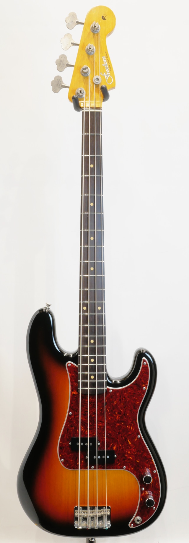 トラディショナルなスペックにて構成されたRetroシリーズのPBモデル。アルダーボディ、メイプルネック/ブラジリアンローズウッド指板。フリーダムオリジナルピックアップPB-VINTAGEを搭載。総重量約4.14kgと標準程度のウェイトをキープした個体です。フレットにはフリーダムの十八番ステンレスフレットではなく、Jescar製ニッケルフレットをセレクト。ビンテージライクな内容にて製作された個体になります。打痕やキズ等使用感は見受けられますが、しっかり大事に使われて来た事が伺えるコンディションです。ネックコンディションも良好状態をキープ。フレットの減りは然程無く余裕を残しております。トラスロッド残量もありプレイコンディションは良好です。