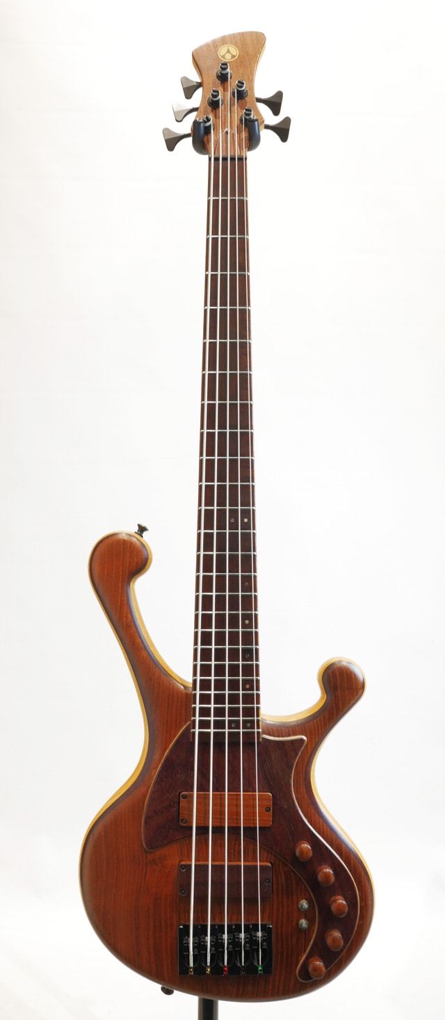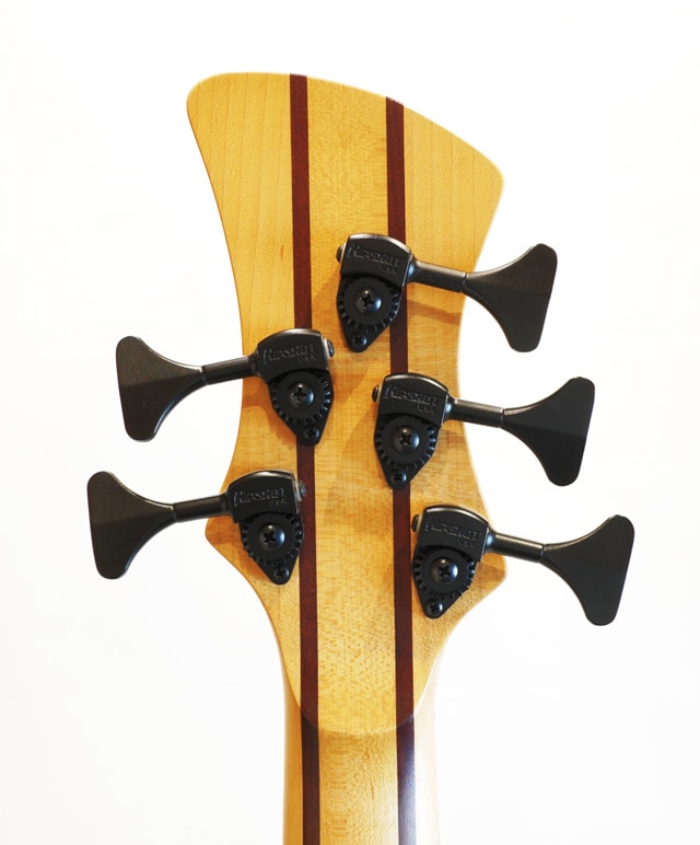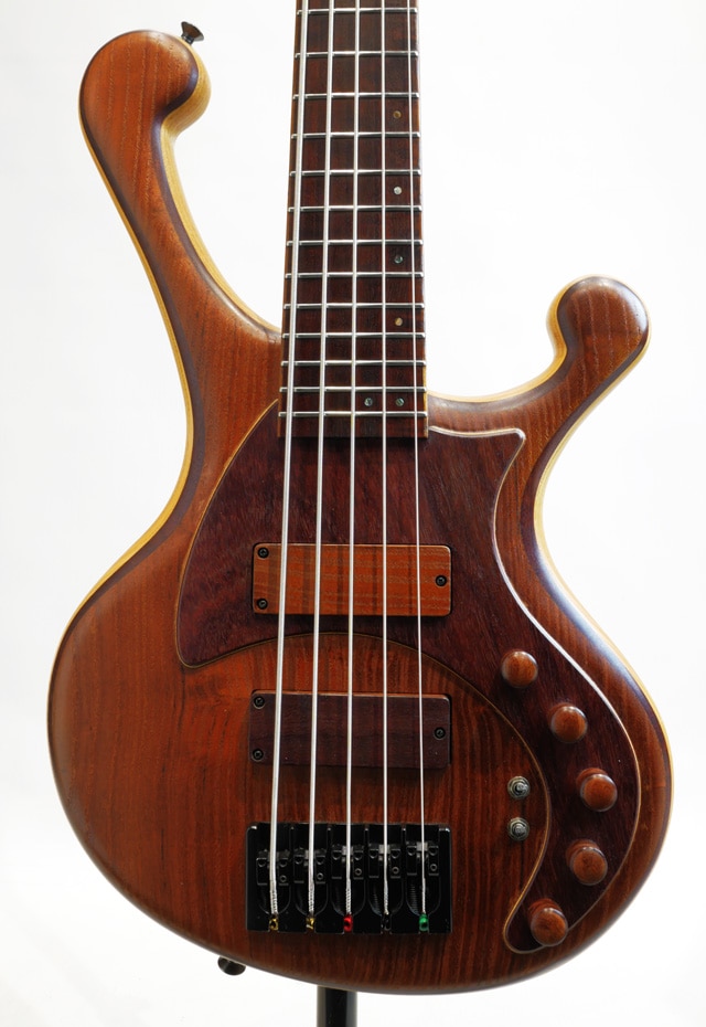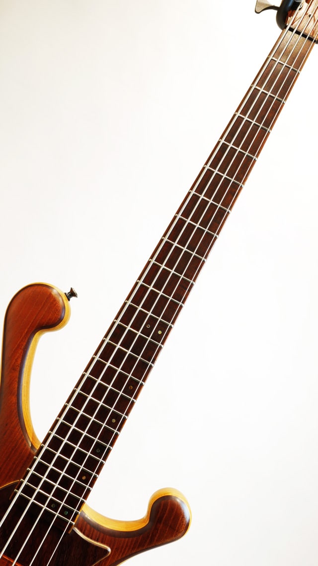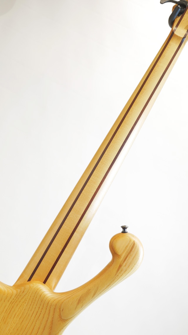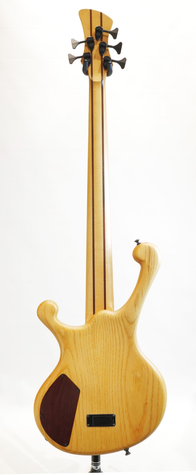 Mulberry Top、Ashバックのラミネイトボディ。ネックはメイプルとパープルハートから構成されたセットネック構造の5pcネック/パープルハート指板。2 Haeussel Bassbarsピックアップ& John East 3Bandプリアンプを搭載。ピックガード、バックパネルもパープルハートで製作されております。スケールは34.5inch設計になります。キズや打痕が点在しており、使用感はそれなりに見受けられます。パープルハートは経年により当初の綺麗な紫色から画像の通り変色しております。塗装されていれば、変色も防げますがオイル仕上げの為経年に伴い変化致します。ネックコンディションは良好状態をキープ。フレットの減りは然程無く、早急な交換の必要性はありません。トラスロッド残量もありプレイコンディションも良好です。