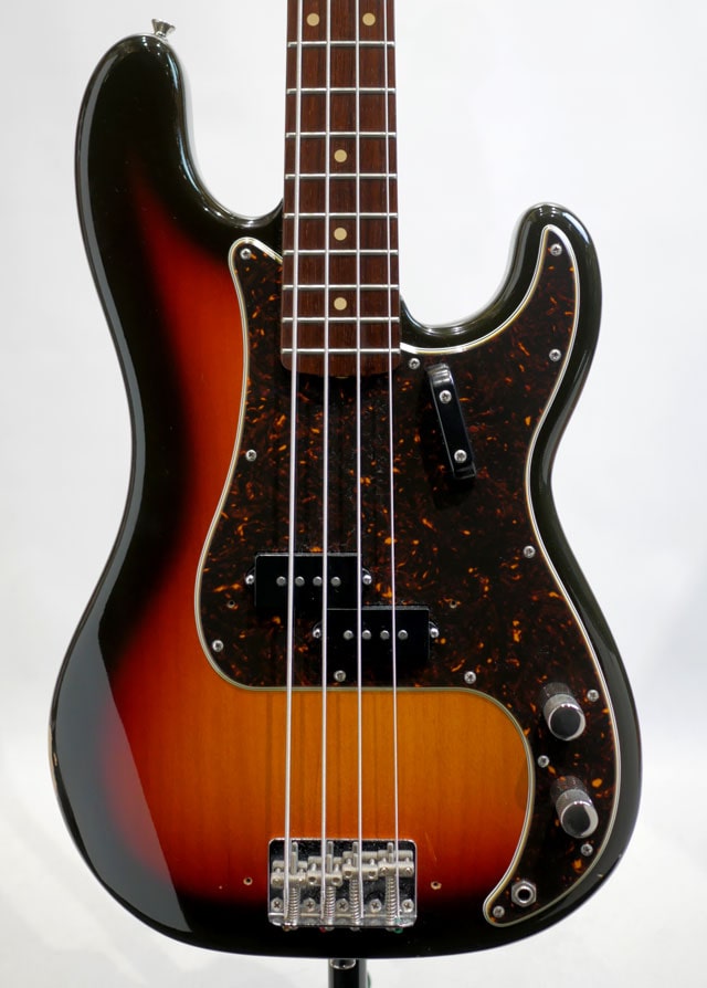 この度入荷致しましたモデルPBV-R2は60sライクなスペックにて構成されており、アルダーボディ、メイプルネック/ローズウッド指板。オリジナルピックアップを搭載。シンプルでストレートなプレべサウンドが印象的です。プレべ特有の骨太感もあり、芯の通ったサウンドです。塗装が薄い為、塗装のダメージを受けやすく、塗装が大きく欠けた箇所が点在致します。他、キズや打痕等使用感は全体に見受けられます。使用感はあるものの、ネックコンディションは良好状態をキープ。フレットの減りは然程無くまだまだ余裕を残しております。トラスロッド残量もありプレイコンディションも良好です。