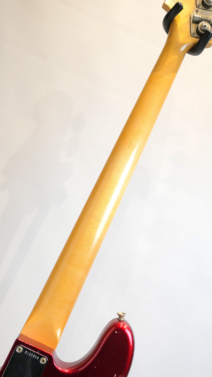 当機はアルダーボディ、スラブ貼りのローズウッド指板を採用したメイプルネックという62年スタイルのプレシジョンベース。通常と異なりネックがジャズベース仕様となっており、38.1mmのナット幅を採用。ヘッド部のデカールもJazz Bass表記のものが使用されており、フランケンベース風の仕上がりとなっています。