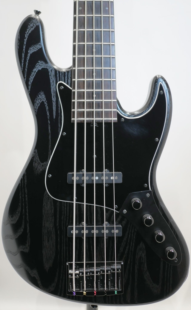 サウンド全体がタイトに引き締まる事でLow-Bの発音もハッキリしております。レンジの広いアッシュの特性と5弦ベースの再生音域の相性も良く、各弦イコライジングもスムーズに効きます。アッシュボディとエボニー指板のコンビネーションの為、サウンドは硬質に寄っておりますが音抜けも良くアンサンブルでもしっかり存在感を放ちます。