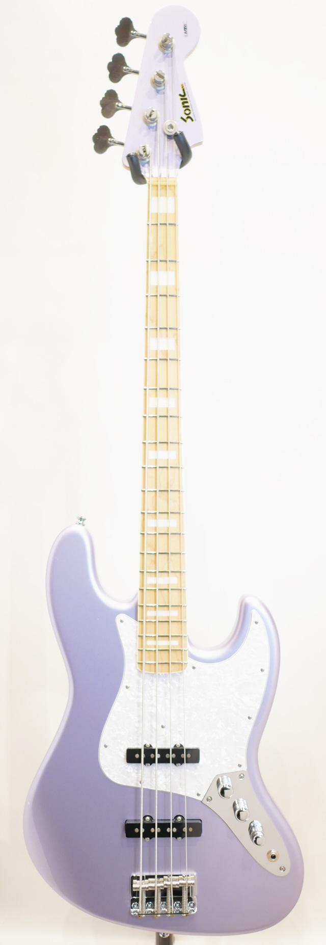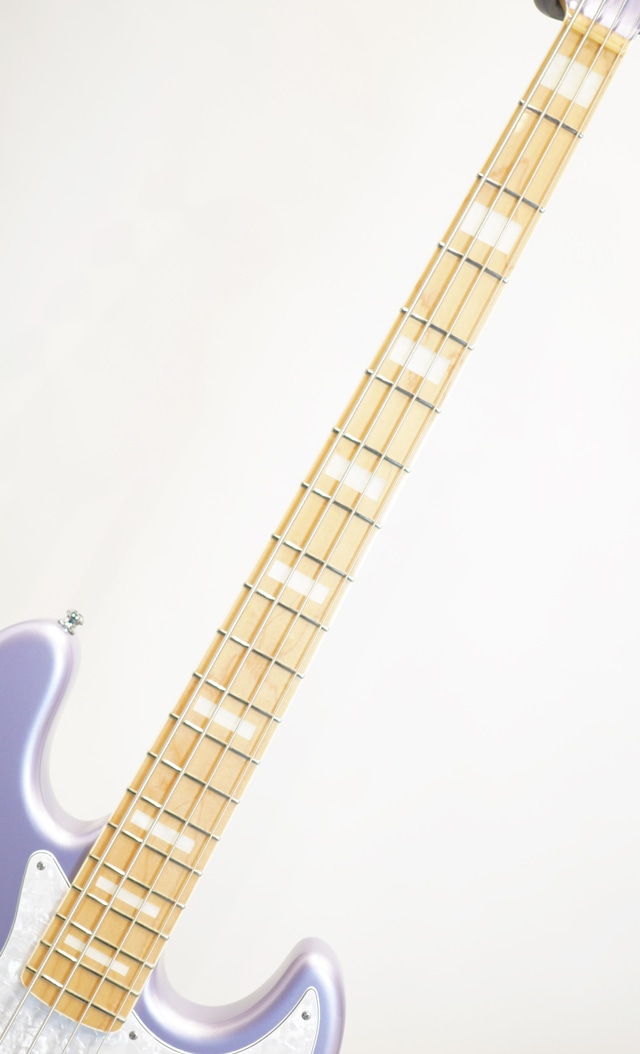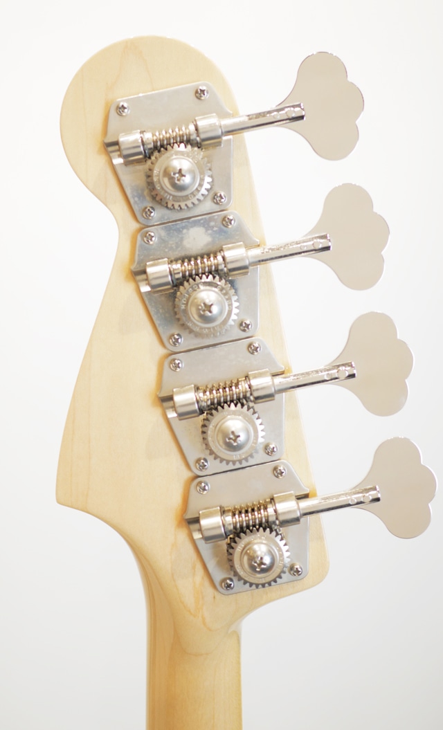 本機はスタンダードスタイルの「SJB」モデルです。アッシュ材ボディにメイプルネック、メイプル指板にはブロックポジションマークにセル巻きバインディングが施されたマッチングヘッドトップとなります。詳細はございませんがフィニッシュカラーは「Ice Blue Metallic」に該当すると推察いたします。電装系はオリジナルピックアップ「Jupiter LJB-01」、フロントボリュームのポットをプルアップすることで「Turbo」モードに切り替わります。オリジナルプリアンプ「Bonheur BH-2M」はミドル2Way仕様となります。ブリッジはオリジナル設計のセパレートブリッジが採用されており、ブリッジのサドルが載るプレート部と弦(ボールエンド)を止めている部分が独立しており、メーカーリペアにてプレート部分の交換が可能な仕様です。現在は恐らくスティールプレートがマウントされており、ブラスまたはエボニーへの交換によりサウンドのニュアンスが変更できます。