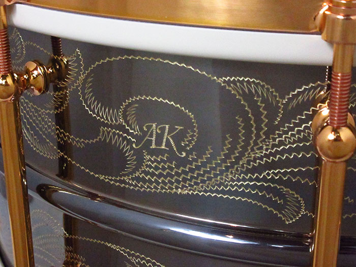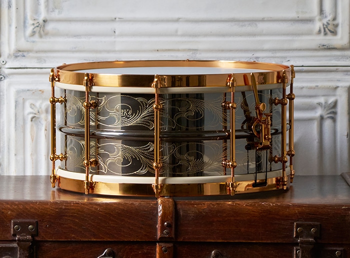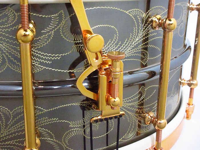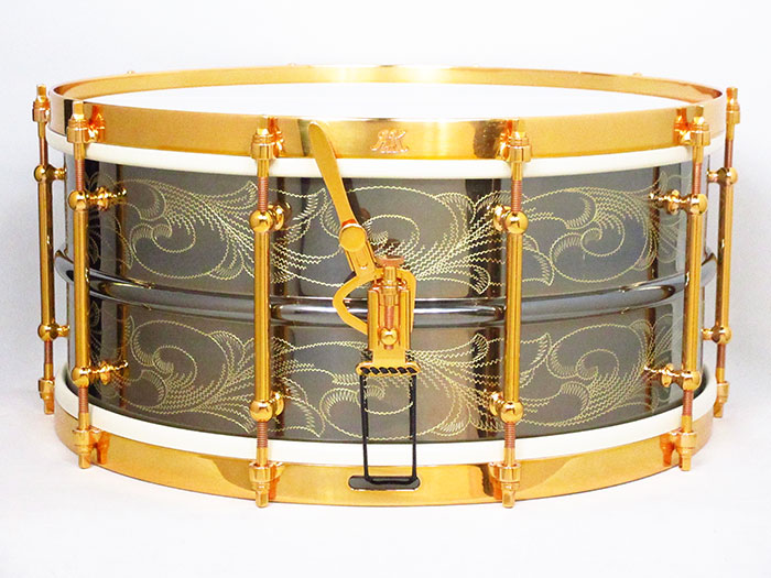 Ludwig社の名器「Black Beauty Deluxe」の”flower”デザインをイメージした手彫り彫刻が施されており、まさに芸術品といえる1台に仕上がっております。