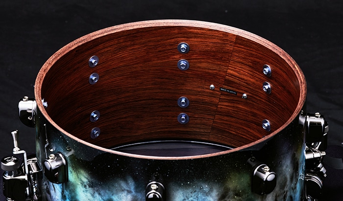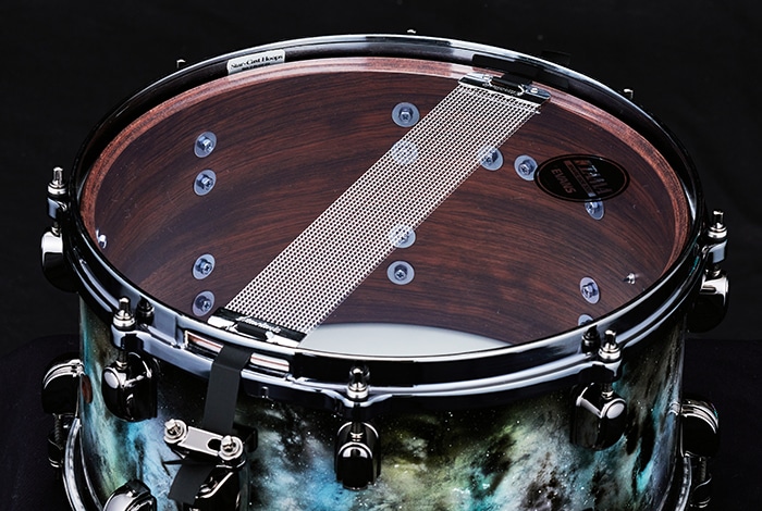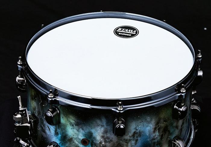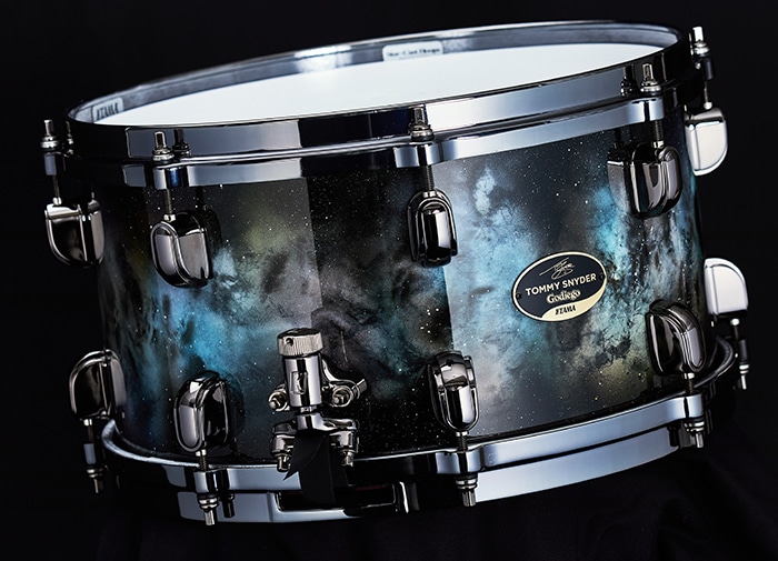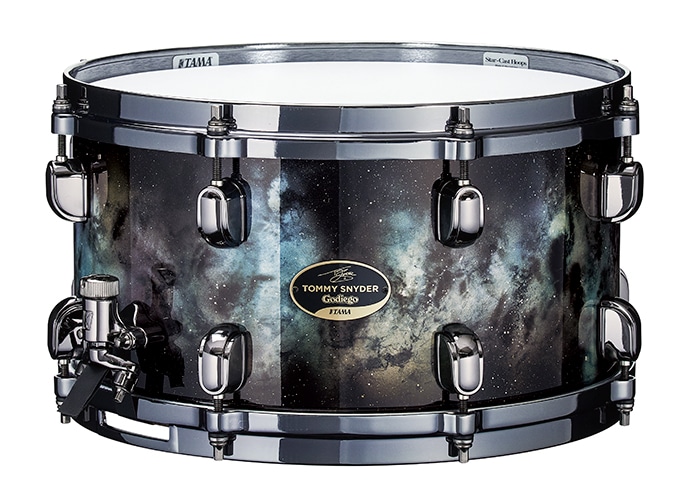 銀河をモチーフにした特別なフィニッシュは、宇宙に広がる星雲を思わせる奥行きのある美しい輝きを放ち、ステージ上でも抜群の存在感を示します。シェルサイズは彼が長年愛用してきた13”x7”。マテリアルには豊かな中低音域が特徴のブビンガを採用することで、抜けの良いクリアな高音と温かみ、そして深みのある響きを備えた、 Tommy Snyderの人柄が表れたような懐の深いサウンドを実現しました。 長年のキャリアを通して培われたTommy Snyderならではのこだわりと、ゴダイゴの世界観が詰まった特別な一台です。