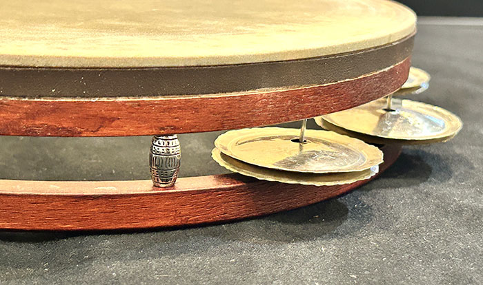 歯切れの良いジングル、ドライなヘッドサウンドで、革の外側にはフィンガーロールをしやすいように細工されています。音の強弱の付けやすさ、レスポンスの速さどれをとっても随一のタンバリンです。