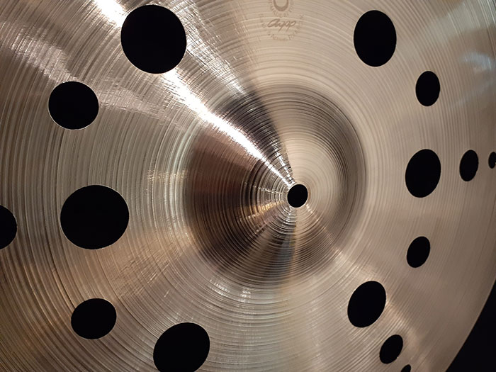 シンバル本体に丸く穴をあけた斬新なデザインのモデル。