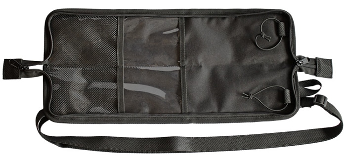 ドラムキーなどのアクセサリーを収納できるメッシュタイプのポケット、持ち運びに便利なショルダーストラップ(取り外し可能)付きです。