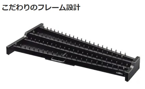 木製のフレームは軽量で耐久性が高いという機能面だけでなくサウンドへの影響も考慮し、幹音側と派生音側でフレーム底から音板までの高さを揃えることで、音板の響きを同じ音量で豊かに共鳴させる構造に仕上げました。