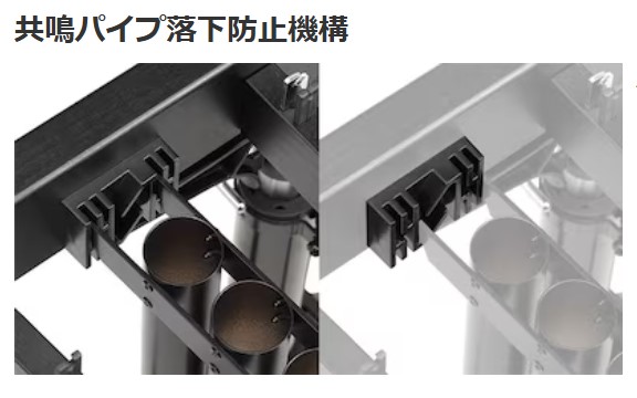 パイプを受ける部品が、運搬時の振動で共鳴パイプが移動しても落下しにくい構造となっています。