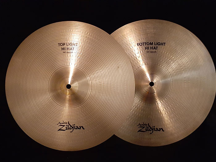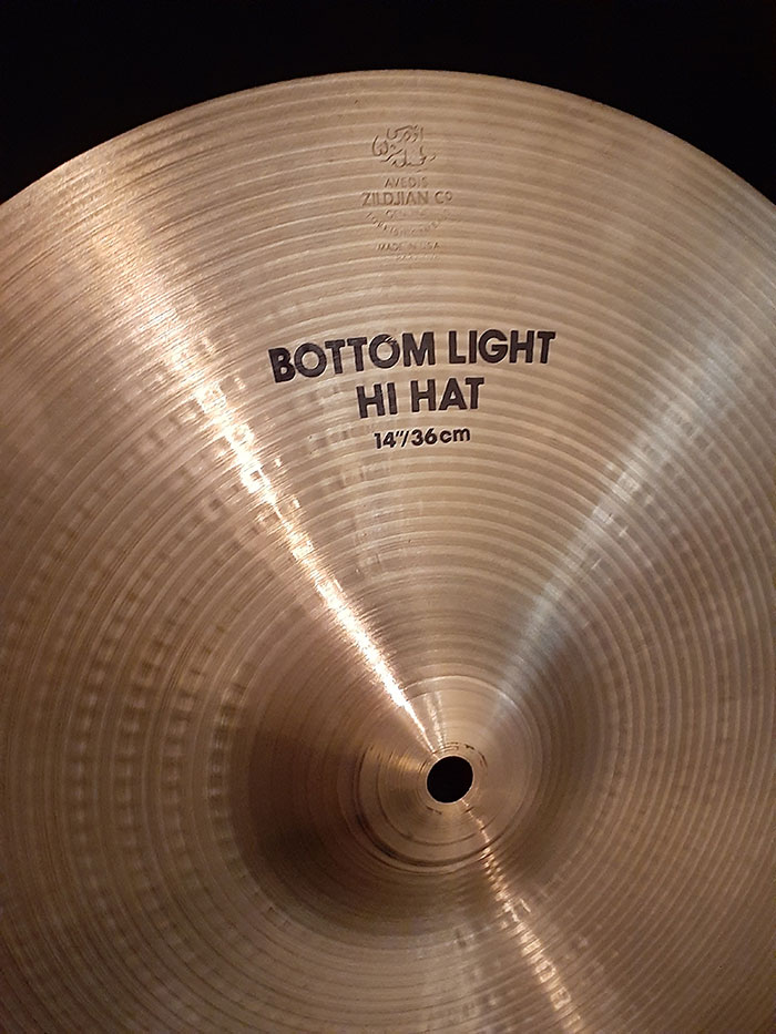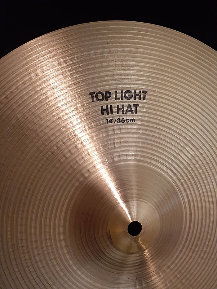 ほとんど使用感のない、かなり美品の個体です。シンバル表面の『TOP LIGHT HI HAT』という文字もしっかり残っています。