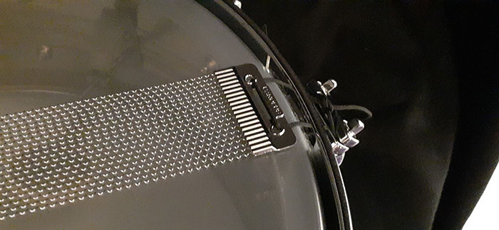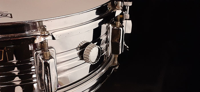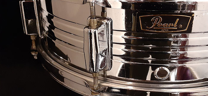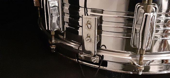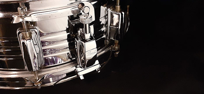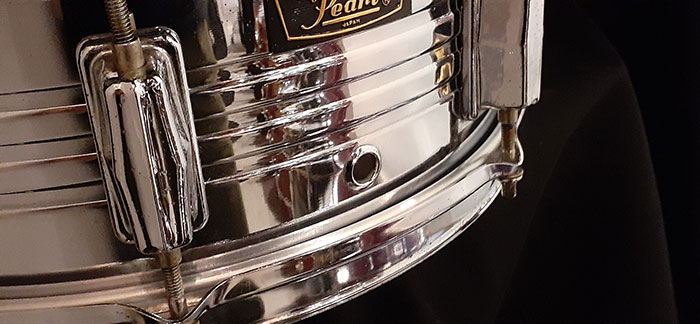 空気穴がボトムフープ近くにあることにより1970年代の後期型の上位機種モデル『Professionalシリーズ』のブラスシェルスネアです。