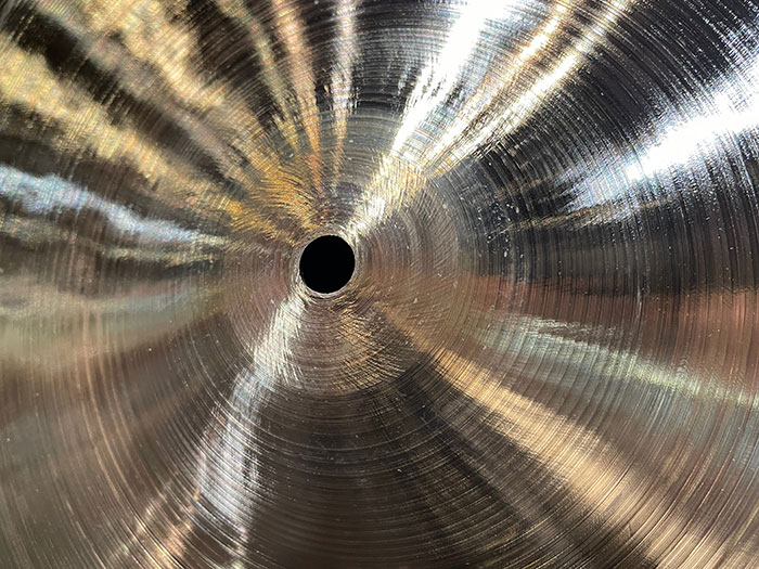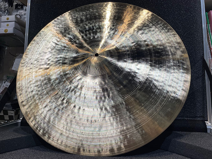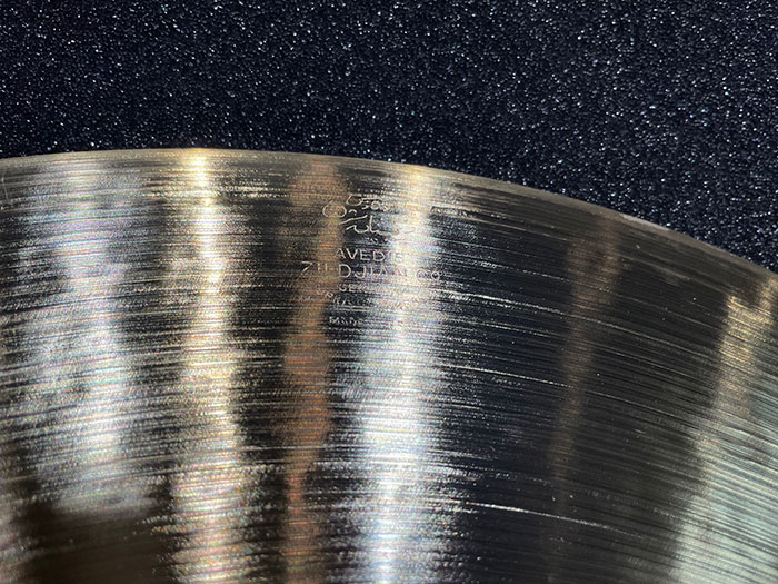 サウンドは水々しい透きとおった洗礼されたものです。ここまで澄みきった音はそうそうないかと思います。そしてその奥に複雑な倍音、そしてA Zildjianらしからぬダークサウンドで1960gとも思わない柔らかさを兼ね備えています。早いレガートでも粒が立ち、見事なシズリーなジリジリした音が後から追いかけてきます。