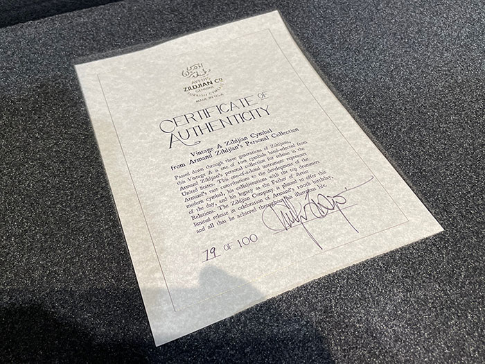 アーマンド氏、そして著名アーティスト等のものと思われる指紋が当時のままシンバルに残されており、歴史的に価値のあるアイテムとなっております。