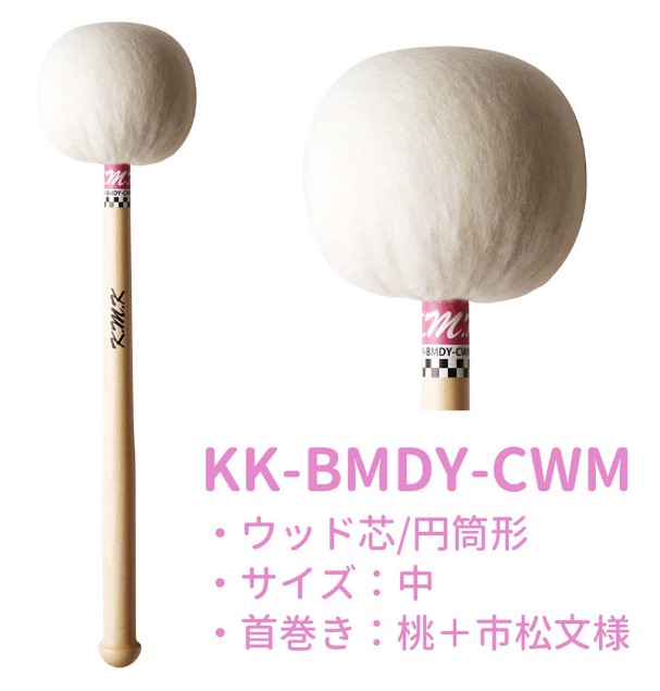 大好評のK.M.Kコンサート・バスドラム・マレット“BMDY”のシリーズに、新たな仲間が加わりました。従来は「コルク芯」仕様ですが、さらなる表現を求め、より深く、より繊細に、そしてよりダイナミックに響かせるために採用されたのは「木製芯」。硬質でやや重めの木材の芯は基本形を「円筒形」と「球体形」の2種類採用し、各々に「大」と「中」を揃えました。全4タイプの個性が、コンサート・バスドラムの表現の幅を、ぐっと広げてくれます。