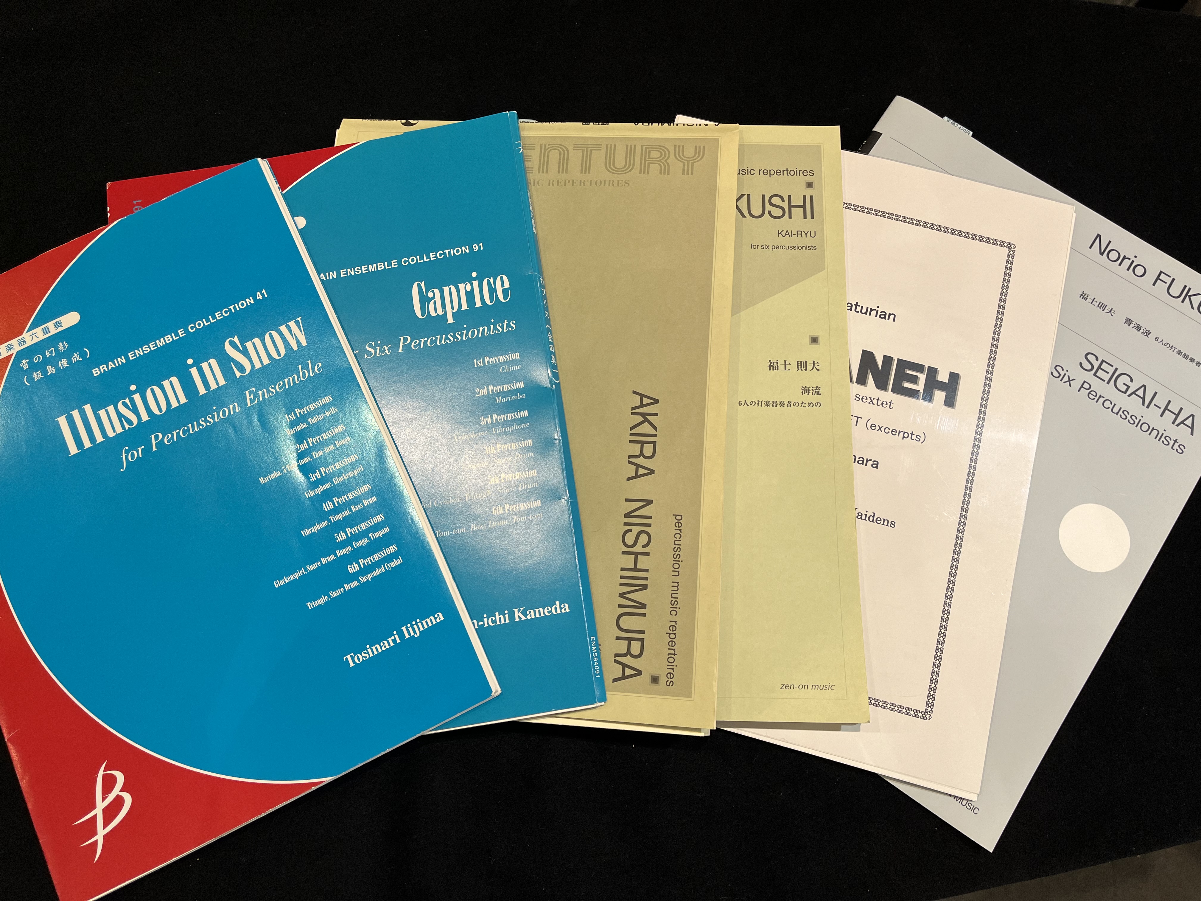 打楽器6重奏の楽譜がランダム3曲のセット販売となっております。