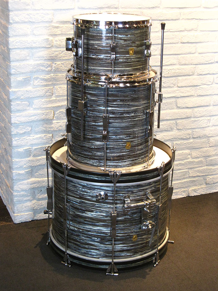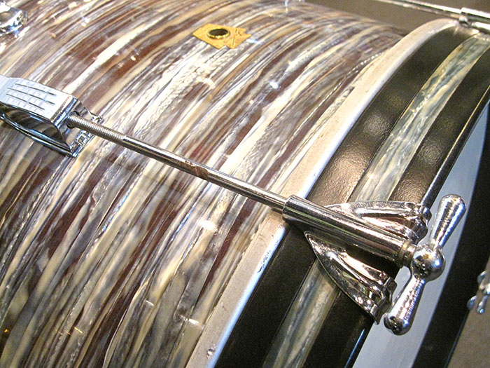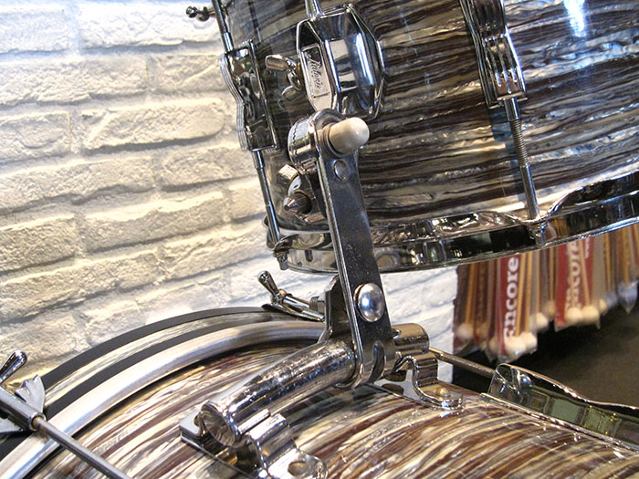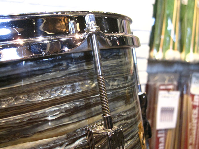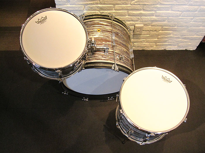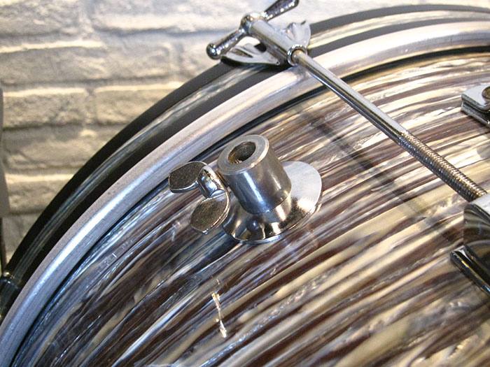 スタンプやシリアルからタム/バスドラムは1965年製造でタムのトップフープはブラスフープとなっています。フロアタムは1967年製造となっています。消耗品のヘッドは現行品へ交換しております。パーツ類には細かな擦りキズやビッツがございますが、サビは少なくメッキ状態は良好です。サウンドに影響するようなシェルへのダメージもございません。ここまで綺麗な状態のクラブデートは初入荷です!!