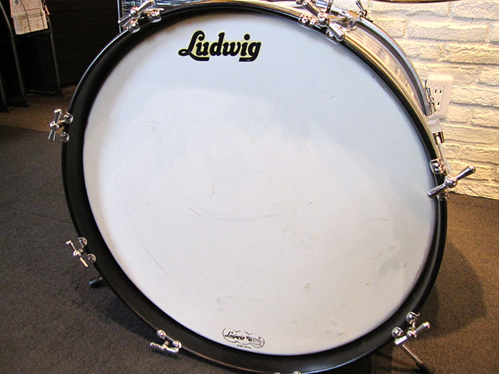 1960年代製、Vintage Ludwigのアウトフィットモデル「Club Date」ドラムセットが入荷しました。同社の兄弟機「Downbeat」に比べ、ワンピースラグを採用し、14"フロアタムは6テンションに設定されており、より丸みのあるサウンドを得ることができます。マホガニー、ポプラ、マホガニーの3プライシェルが奏でるサウンドは非常にふくよかで、低域~中域の存在感は抜群です。