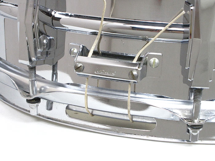 トップフープに若干の凹みがございます。(写真参照)70年代製ブルーオリーブバッジを装着。ヘッドのみ現行品へ交換されておりますが、その他フープ、ストレイナー、ラグ、内蔵マフラー、スナッピーは70年代オリジナルパーツでございます。ストレイナースイッチの動作もスムーズで現状使用に問題無く、サウンドに影響するようなキズはございません。