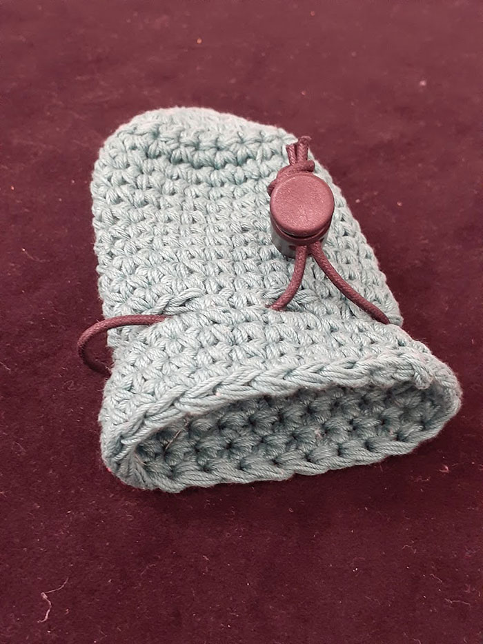 さまざまな素材で試しましたが表面が凹凸のあるこちらの編み込んだコットン素材が一番サウンドが変化してアタックが少しとれて、あたたかいサウンドが得られました。
