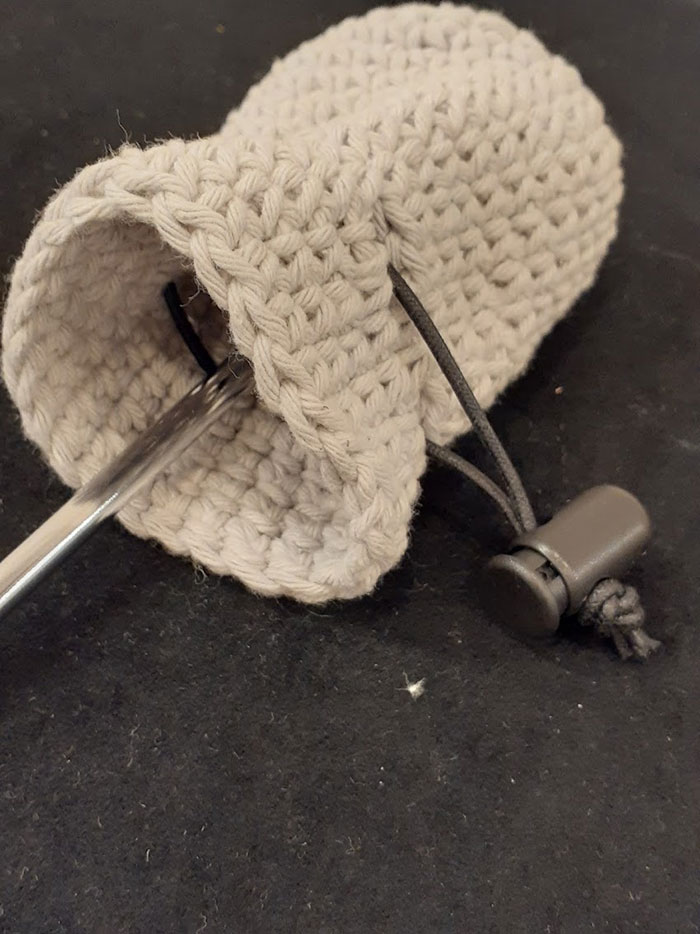 さまざまな素材で試しましたが表面が凹凸のあるこちらの織り込んだコットン素材が一番サウンドが変化してアタックが少しとれて、あたたかいサウンドが得られました。