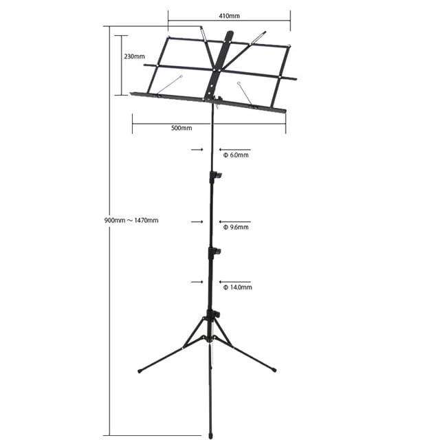 軽くて丈夫なアルミ製の折り畳み式譜面台です。