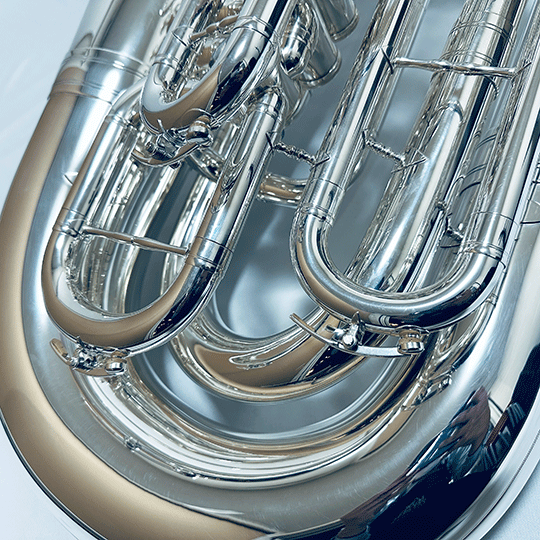 通常大型のテューバは低音域を鳴らすのに技量が必要なモデルも多いですが、このモデルはそのサイズに対して低音域がとても鳴らしやすく、実用性が高いことでも知られています。 現在大音量に対応したテューバは6/4のものが多いですが、このモデルは5/4でありながら6/4と全く遜色ないパワーを出すことができ、多くの場面で活躍することができます。