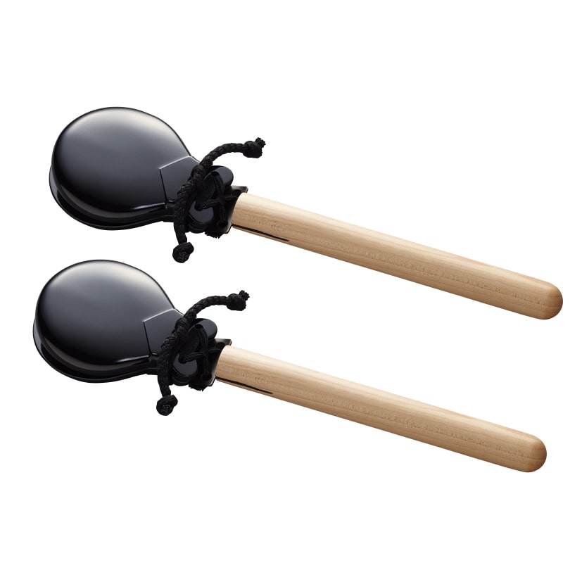 柄付のカスタネット。お求めやすく、明るく扱いやすいファイバー製のモデル。