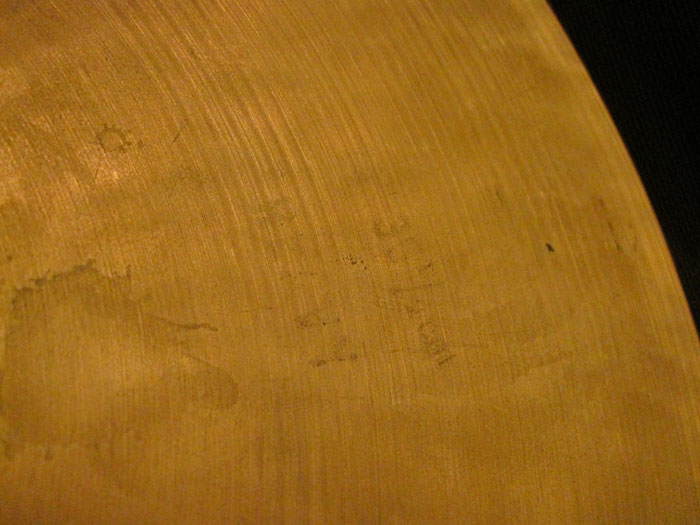 シンバル裏側にHEAVYとMEDIUMとスタンプがうっすらですがございます。シンバルのくすみはあるもののキーホールや割れ欠け等サウンドに影響するようなキズは一切ございません。非常に良好な状態です。