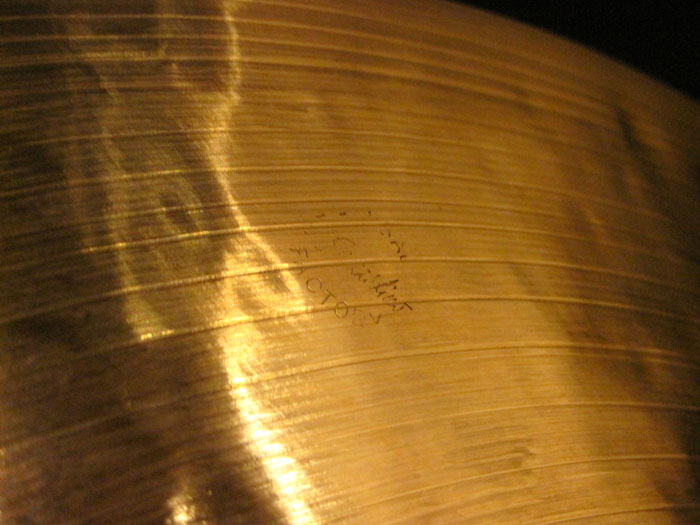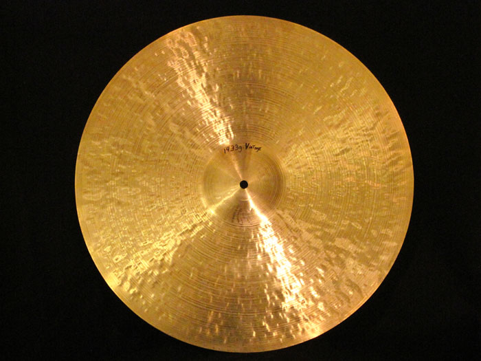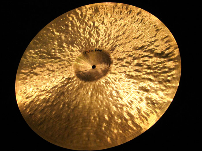 シンバルの裏側にvintageとマジックで書かれており(ロベルトのサインでは無いと思われる)ハンマードはkaシリーズより少なめだが彫く深いなだらかな印象がございます。スピッツではやや重めの1900gでアタックのまとまりが良いプラス非常に複雑な倍音が色気あるサウンドです。