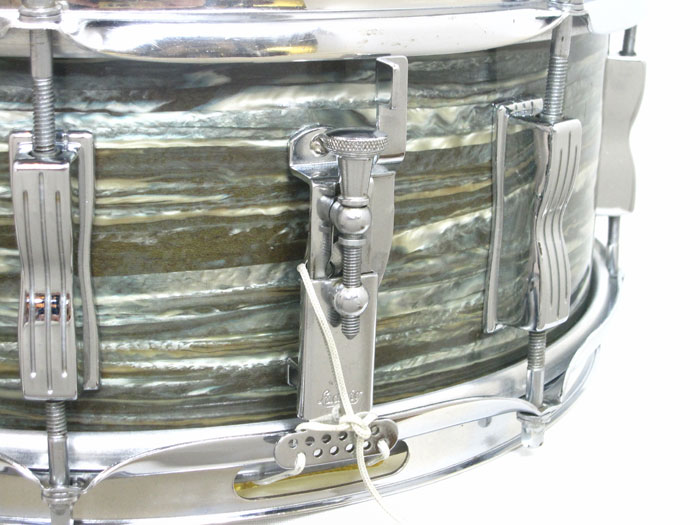 カバリングの状態も良好で大きなキズも無くキレイな状態で残っております。非常に美しいオイスターでリンゴスターで有名なオイスターブラックの青バージョン、エッジも奇麗なラウンドタイプでひび割れや破損などない為、程よいサスティンを得られます。さらにドライながらも反応が良く、明瞭なサウンドを奏でるJAZZやPOPSなどに大変お勧めです。
