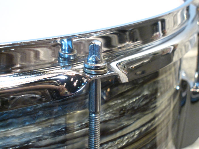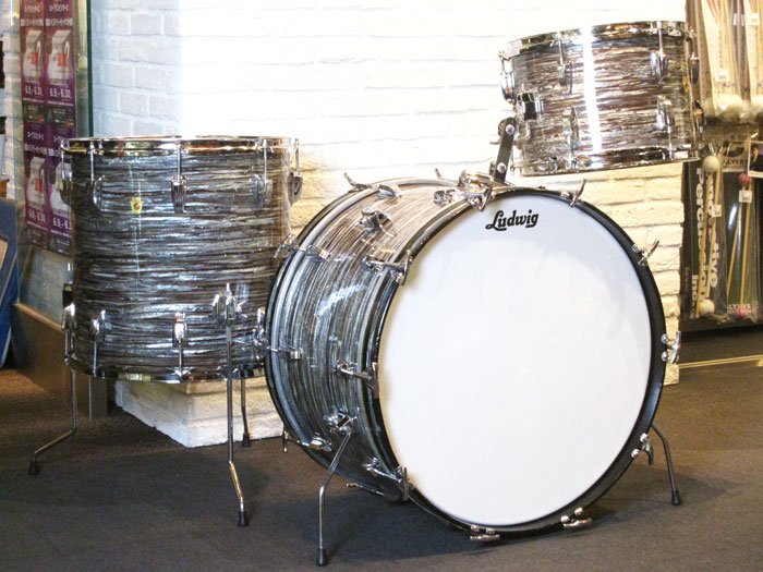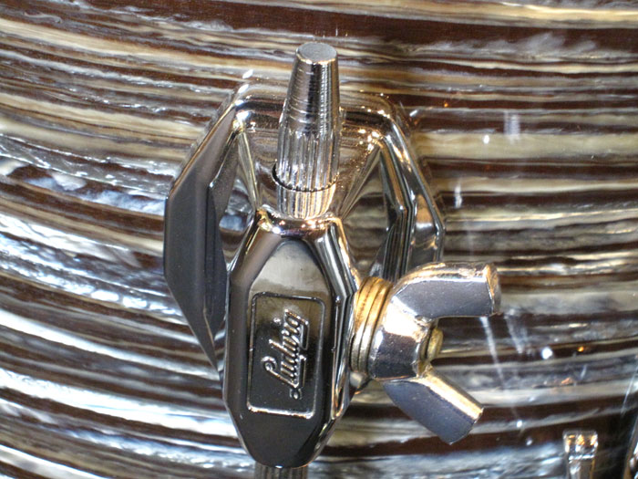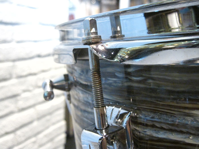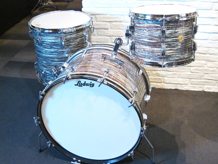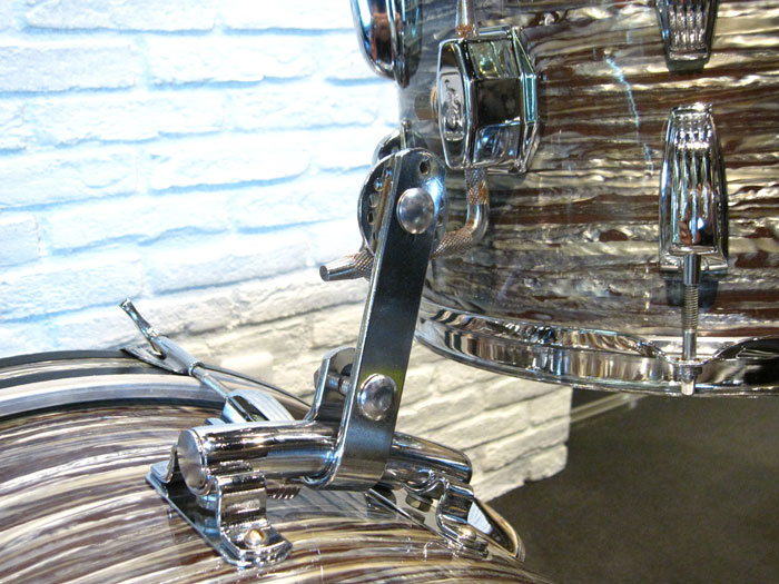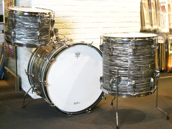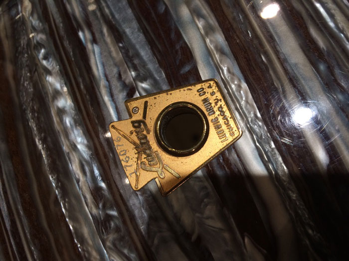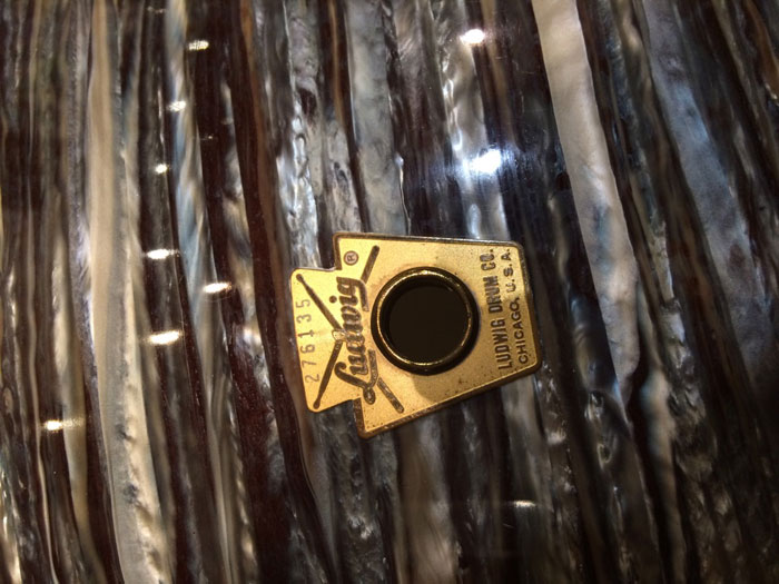 シリアルからバスドラムは1965年製造、タム、フロアは66年製造、バスドラムのインナースタンプに「MAR 14 1965」フロアタムに「MAR 14 1966」、タムはノースタンプとなっています。全てホワイトインレイあり、ノブタイプのマフラー(白)が装着しています。消耗品のヘッド以外はオリジナルパーツを装着しています。全体的に状態は非常に良く、シェルやパーツに目立ったキズはございません。パーツ類はビッツも少なく、新品のような輝きを残しています。トータル的に良好でサウンドに影響するようなキズはございません。