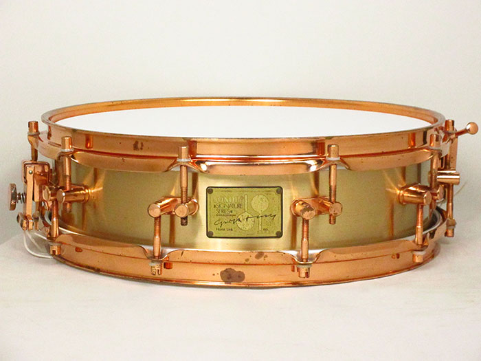 従来ピッコロサイズの浅胴は音圧の軽減がございますが、キャストブロンズシェルから放たれるサウンドは安定感と圧倒的な音圧を表現しながらもレスポンスの早さがあり非常に優れたサウンドバランスを獲得しております。またダイキャストと比べ柔らかく繊細なロールワークから大胆なオープンリムショットまでジャンル問わず、名スタジオミュージシャンの必須アイテムです。また圧倒的な威圧感のあるルックスも魅力です。