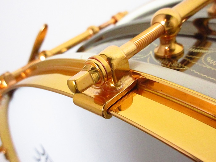エッジの折り返し部分をシェル本体に半田付けしたベアリングエッジ加工は、1920年代から40年代までに生成されていたシェル構造を取り入れています。これらはエイドリアン氏が多くのビンテージドラムを収集し、リペアで培い、長年のシェル構造の解析によって習得できるようになりました。