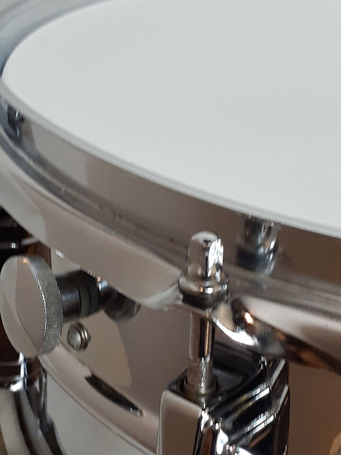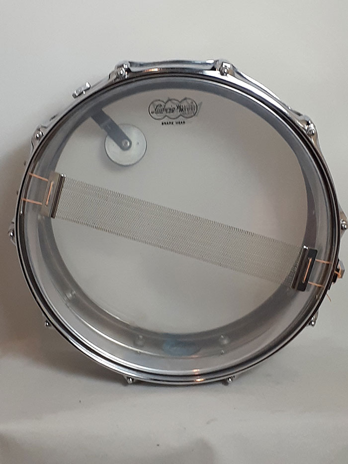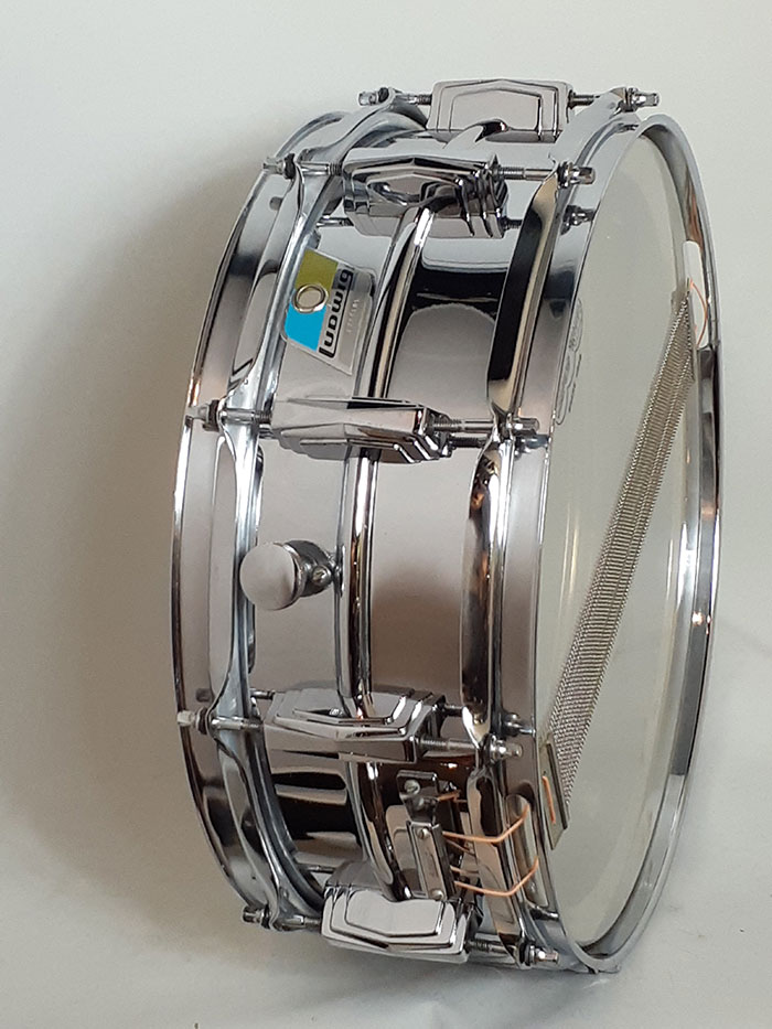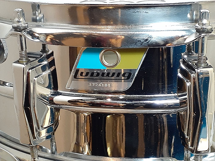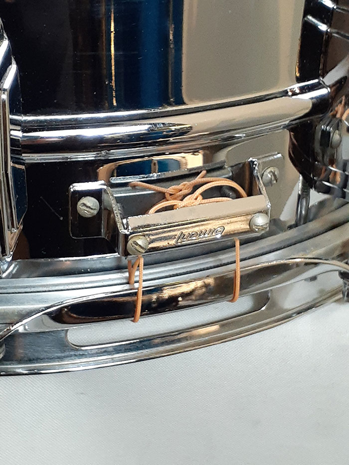 70年代製ブルーオリーブバッジを装着。打面ヘッド、スナッピーのみ現行品へ交換されておりますが、その他フープ、ストレイナー、ラグ、内蔵マフラーは70年代オリジナルパーツでございます。全体的にビッツやサビは無く光沢がありキレイです。ストレイナースイッチの動作もスムーズで現状使用に問題無く、サウンドに影響するようなキズは一切ございません◎