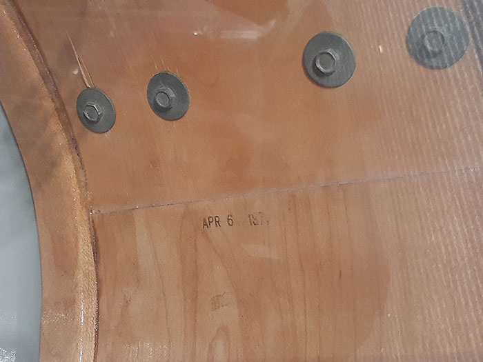 シリアルナンバーやシェル内側にDATE STAMP『APR 6 1971』と記載されていることにより(画像参照)1971年に製造されたものと思われます。ナンバーが4点とも近いことのよりおそらく1969年にこちらの4点にて製造出荷され、所有されていたものと思われます。しかも大変希少な1960~70年代の3大カラーのうちの1つ『MOD ORANGE』カラーです。